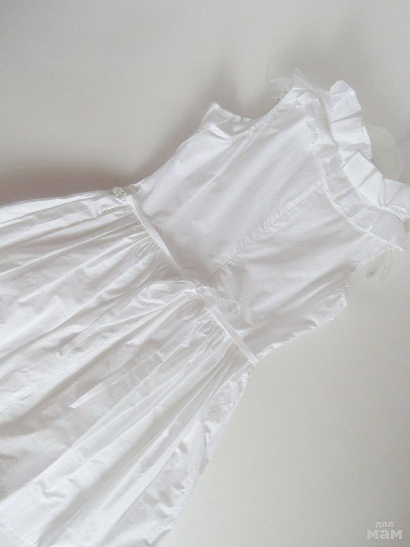 35 см от плеча, 24 см от подмышки (в т.ч. оборка 8,5 см). Длина по середине спинки - 38 см, спереди - 37 см