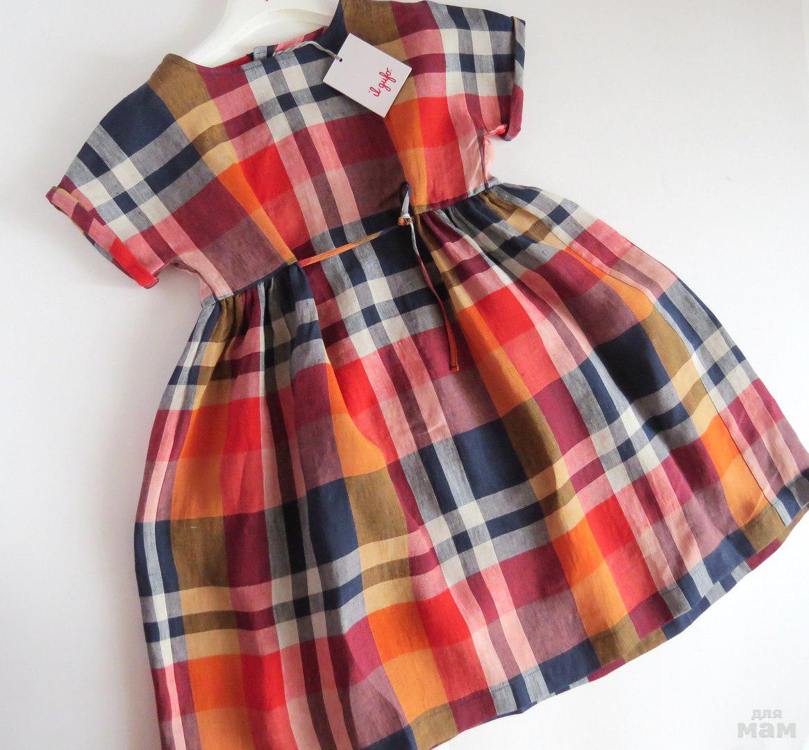 Сарафан серый в сине-красную клетку с двойной юбкой Aletta couture