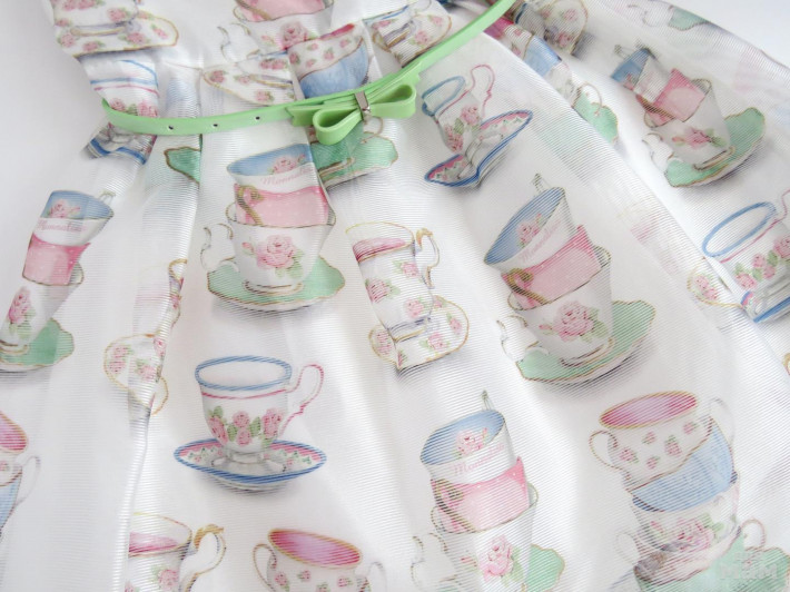 Плечи - 27,5 см, подмышки -34 см, высота проймы - 19 см, ширина в области талии - 35 см, ширина пояса юбки - 38 см. Длина общая - 72 см, длина верха до пояса - 36,5 см, высота пояса - 2,5 см, длина юбки (общая, два слоя)- 33 см