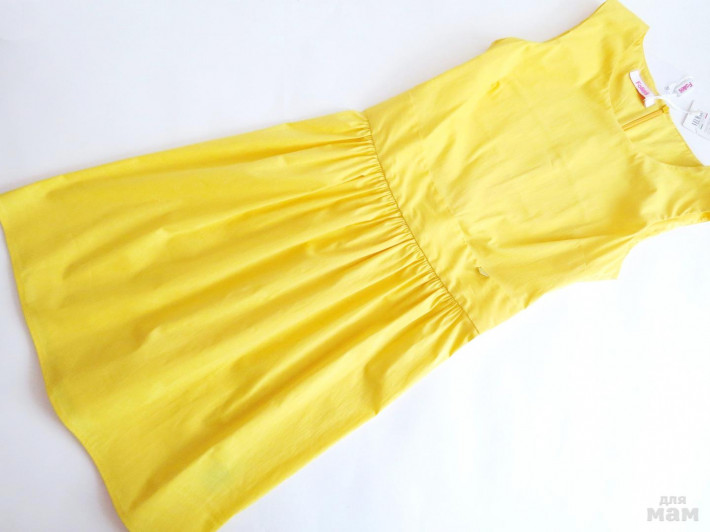 По линии подмышек - 42 см, пояс - 39 см (отлично тянется), высота пояса - 3 см, общая длина (от верха лямки до низа юбки) - 98 см, юбка от пояса - 49 см