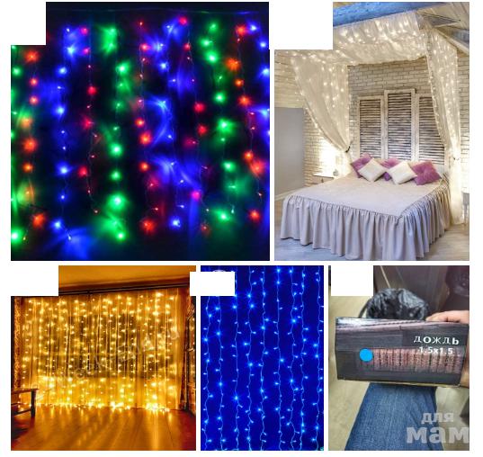 Новогодняя гирлянда-дождь для украшения домаРазмер: 1.5х1.5