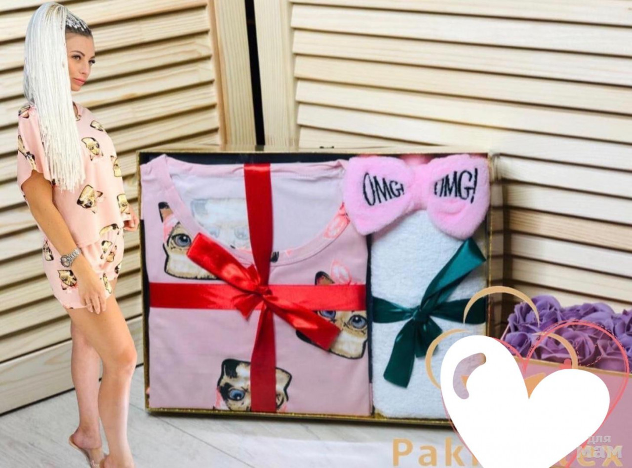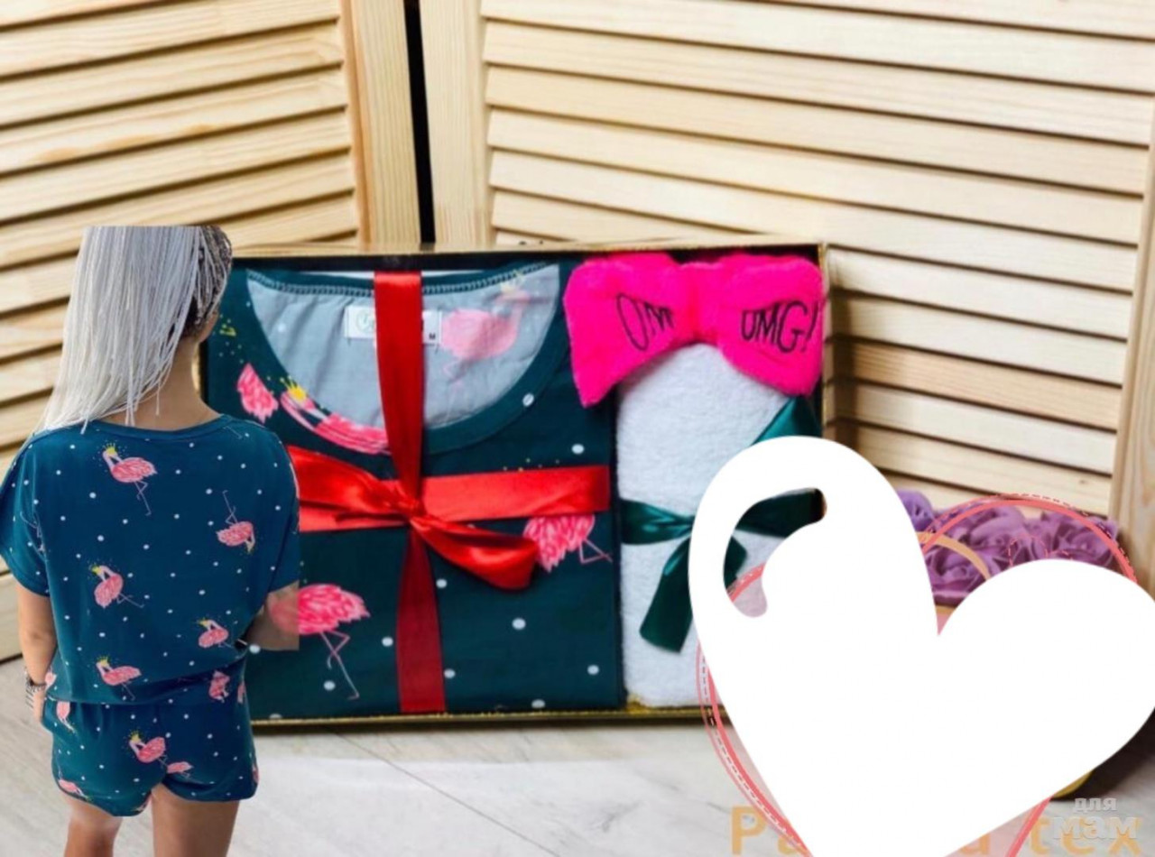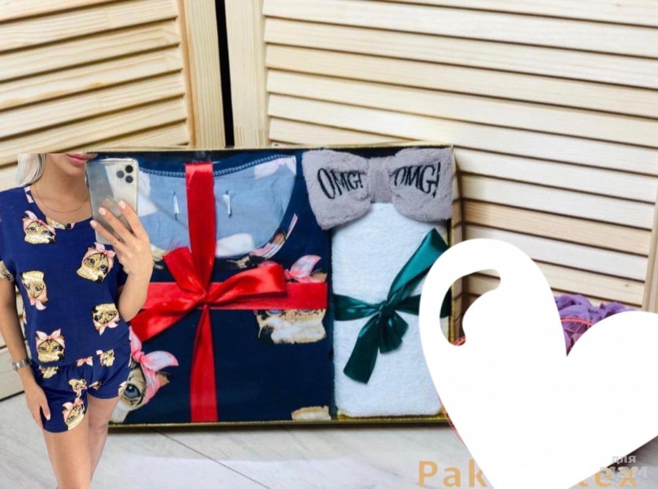 Набор состоит- пижама (Шорты и футболка), полотенца и повязка.