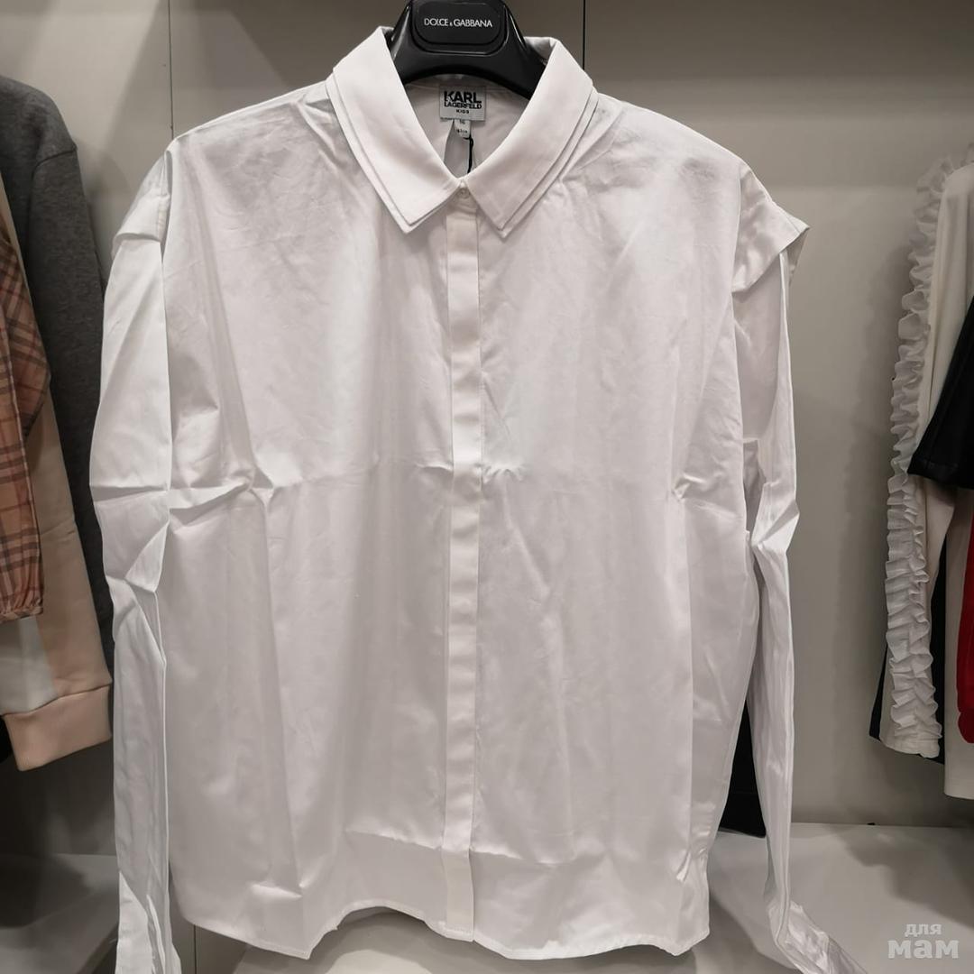 Классическая блуза KARL LAGERFELD из 100% хлопка, посадка по фигуре, с рюшиками. Размер 16 лет, цена 5500 рублей.