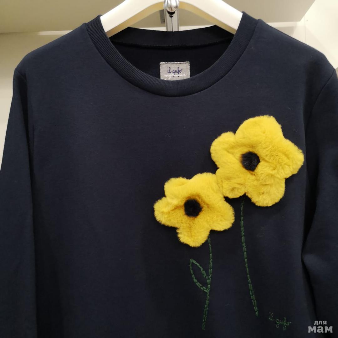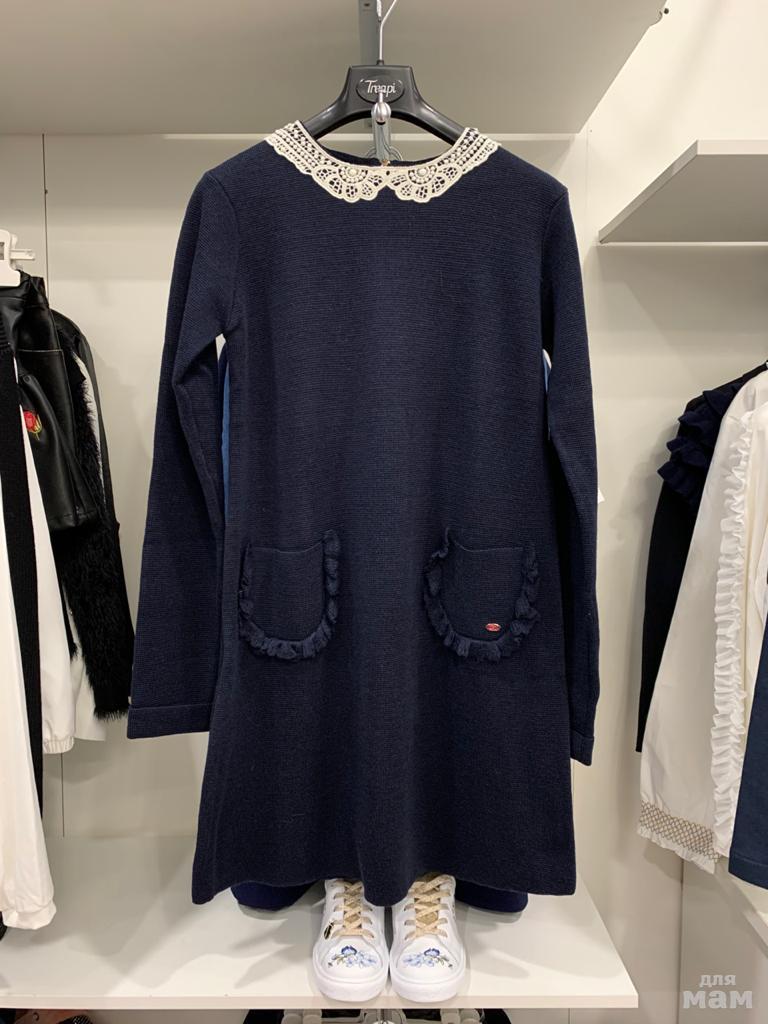 Трикотажное платье IL GUFO, из футера в петельку. Цвет темно-синий. С аппликацией из шелковистого меха. Размер 14 лет(на 40-42росс). Цена 10700 рублей.
