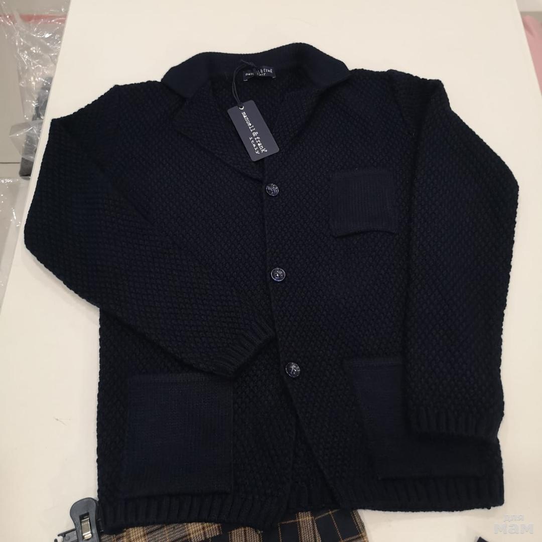 Новая в этом сезоне марка MANUELL FRANK, неизбитый дизайн, отшита в самой Италии! Классический лук-кардиган, темно-синего цвета , 50% шерсти, с кармашками. Размер 10/12 лет, цена 6300 рублей. Брюки со стрелками в клетку из плотной костюмной ткани, цвет кэмел/темносиний. Размер 10/12 лет. Цена 5900 рублей. Брюки на 3 года, цена 5250 рублей.