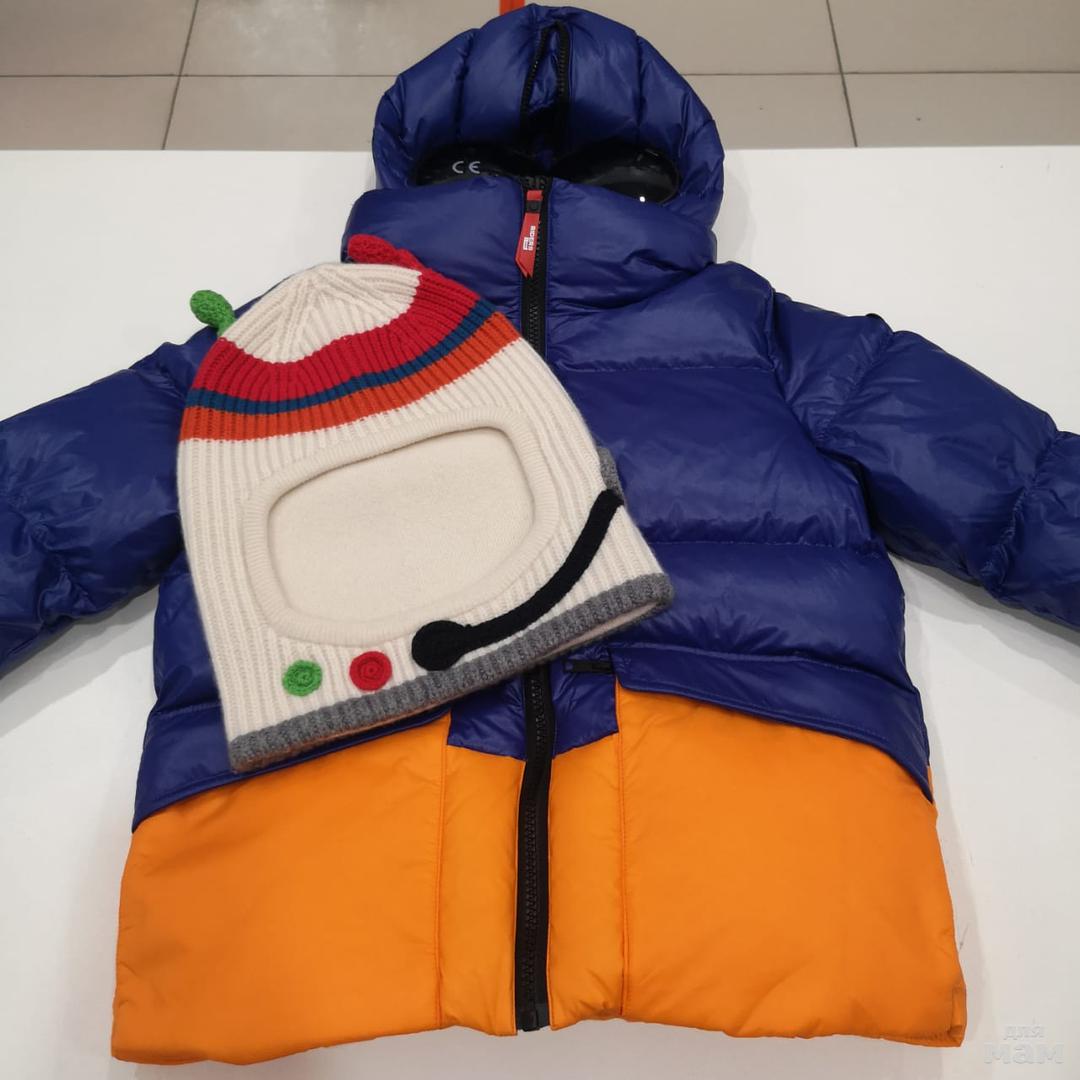 Пух IL GUFO, один из самых тёплых. Прочнач ткань, утеплённый капюшон. Проклеенные молнии. Мех енот SAGAFURS. Размер 6 лет. Цена 20900 рублей. Шапка CANADIENS, на пуху. Размер 54, цена 1500 рублей.