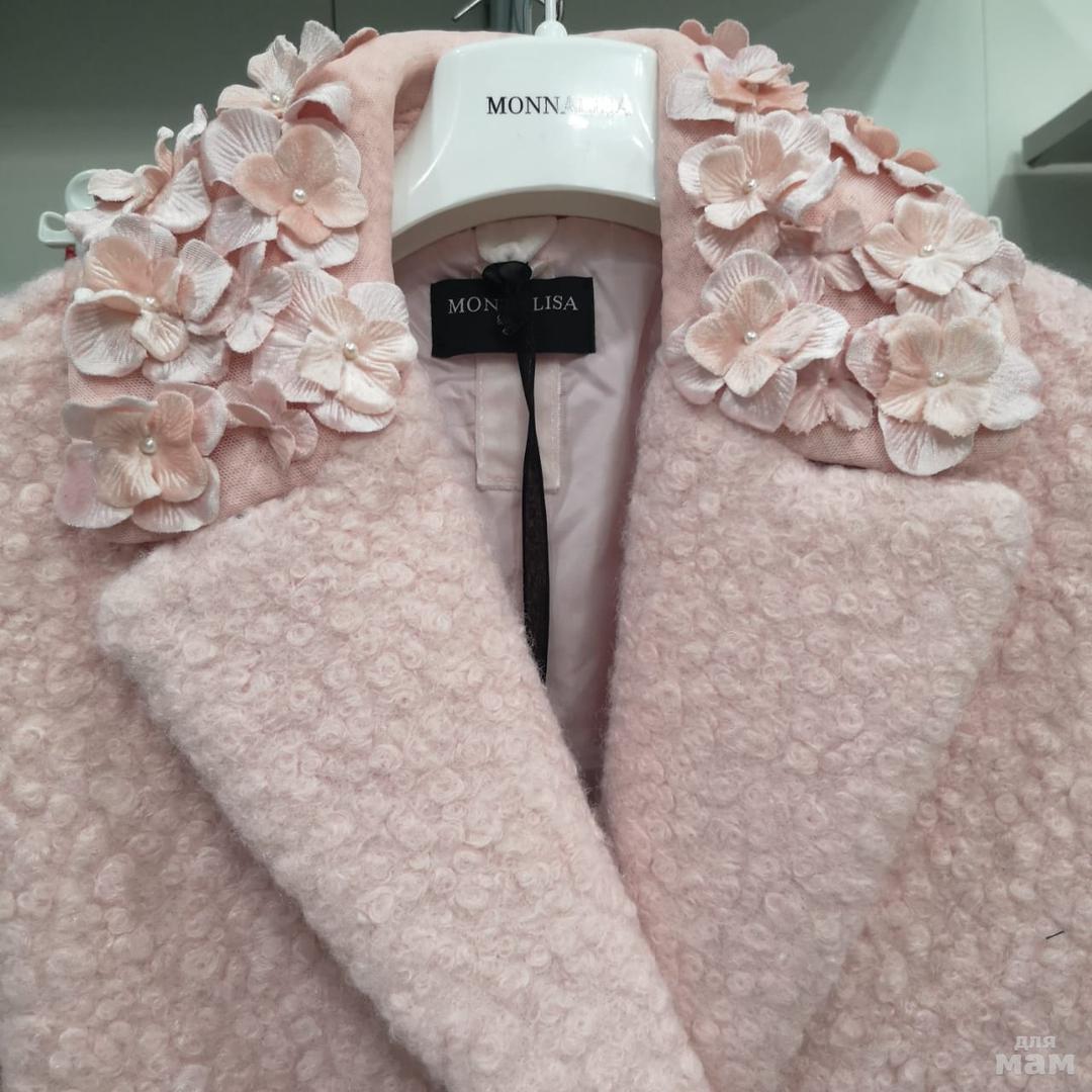 Шикарное пальто MONNALISA, из шерстяного букле с 3D цветами на воротнике. Размер 8 лет, цена 19500 рублей.
