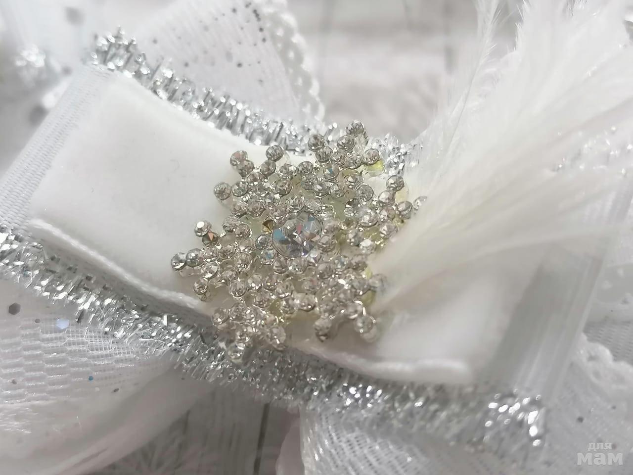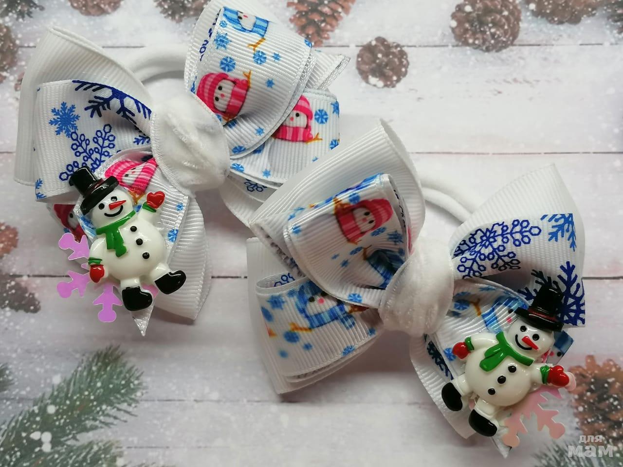 6) Крутецкие зимние бантики. Смотрите какая композиция - просто заснеженная сказка! Размер бантиков по крайним точкам 8 см. Основа на выбор!
