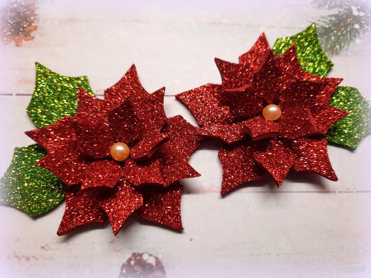 5) Капризные для фото, но очень классные заколочки пуансетия. Можно взрослым смело! Выглядят достойно и празднично.