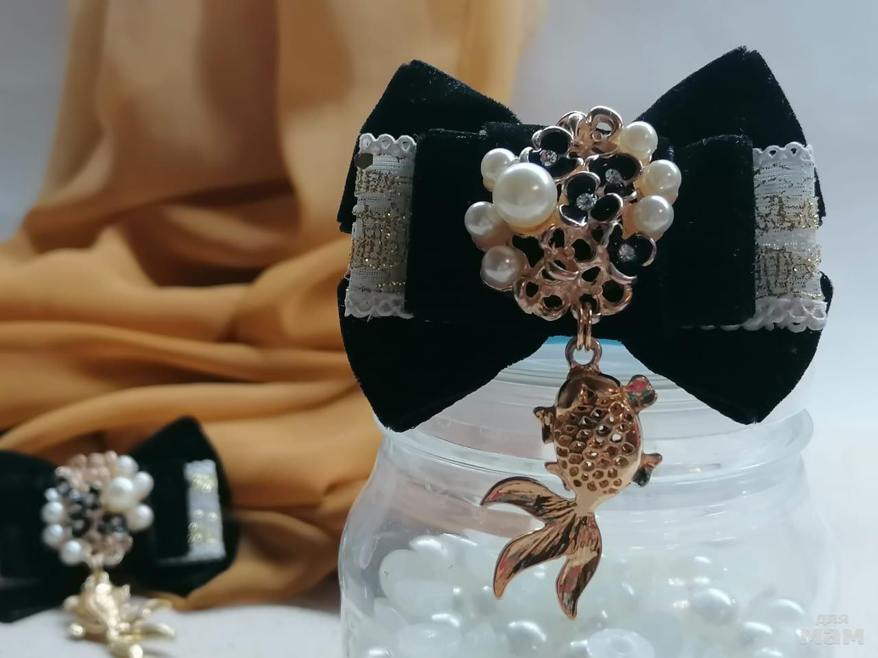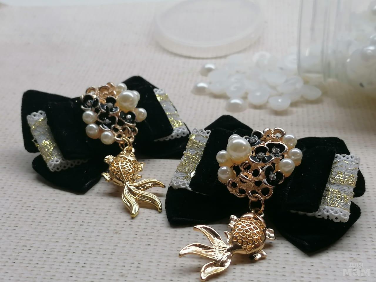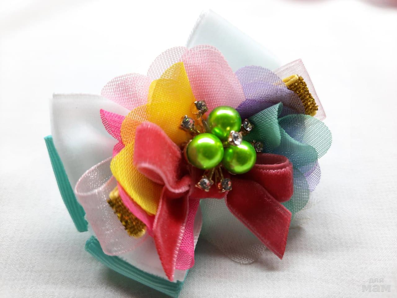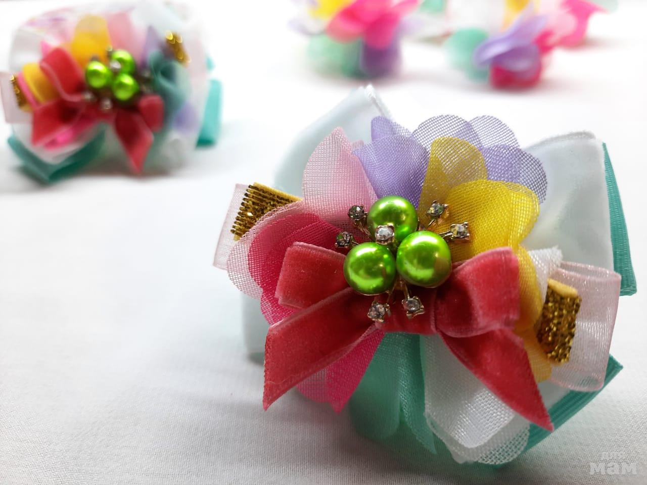 1) Открываем яркими позитивными бантиками, которые поднимут градус позитива и подойдут ко многим нарядам. Бантики не большие, около 7 см. Использован бархат, органза, парча.