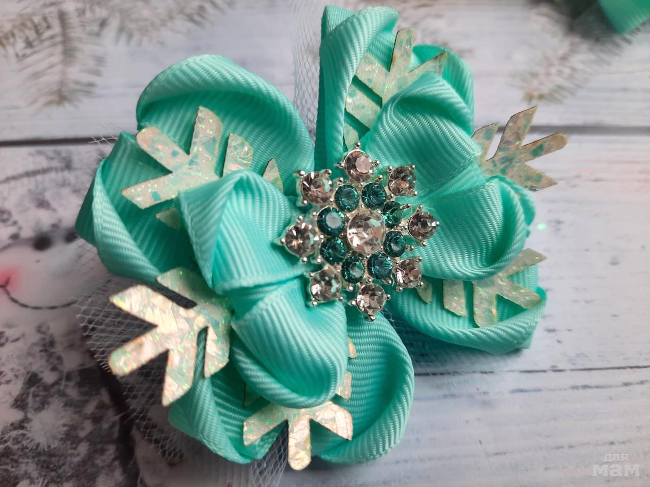 14) Небольшие мятные бантики под наряды цвета мята. Снежинки галографические и ювелирные.