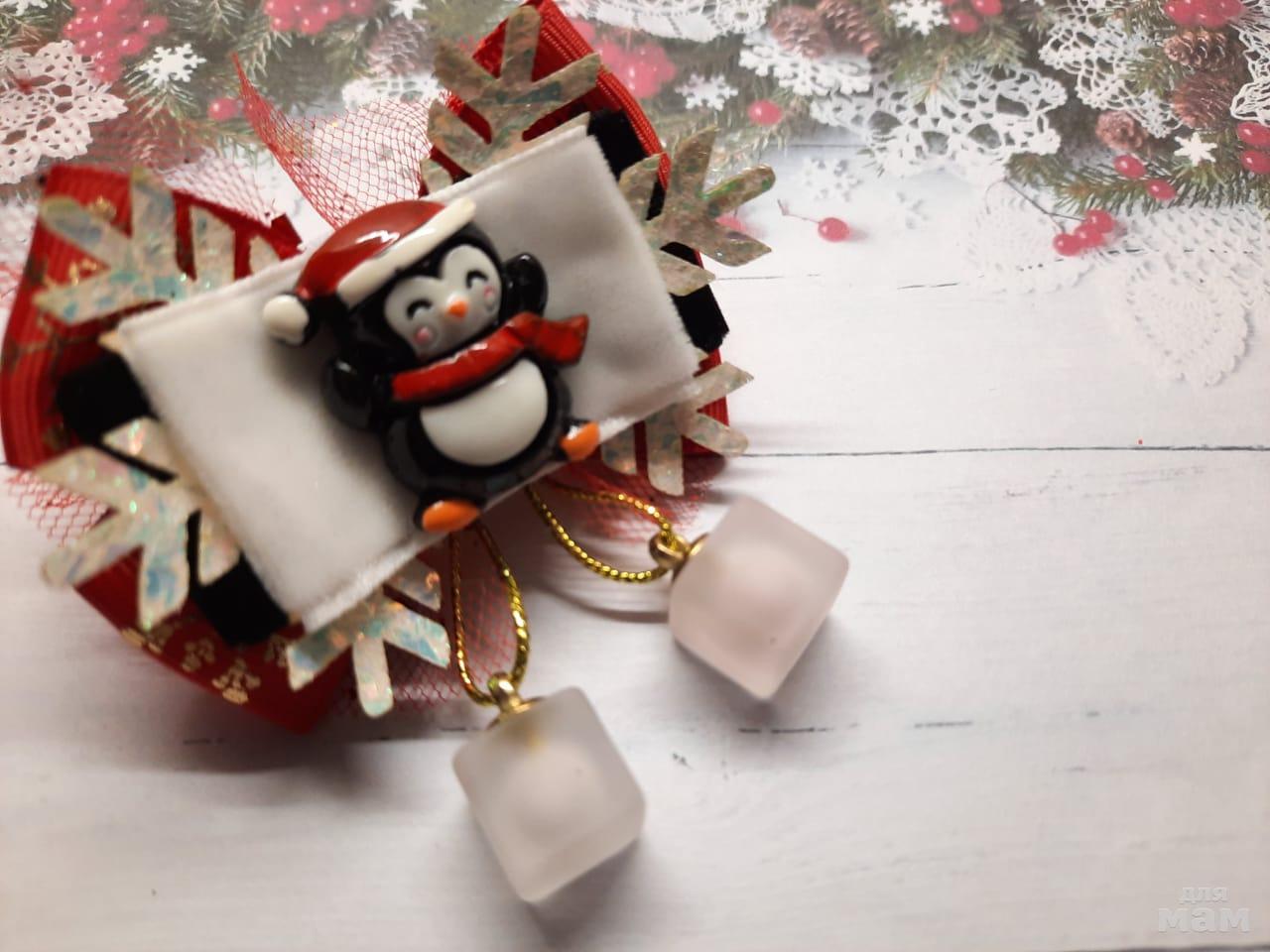 3) Очаровательные пингвины с классными льдинками) Размер бантиков 7см. Смотрятся очень прикольно. На сеточке галографические паетки.