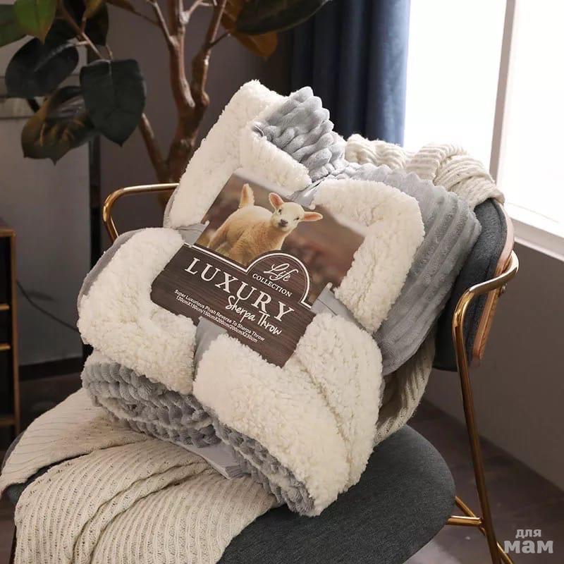 Супер - Мягкие и Тёплый Двухсторонний Плед, с одной стороны велюр, с внутренней овечья шерсть РАЗМЕР 210/220см (ЕВРО Размер)