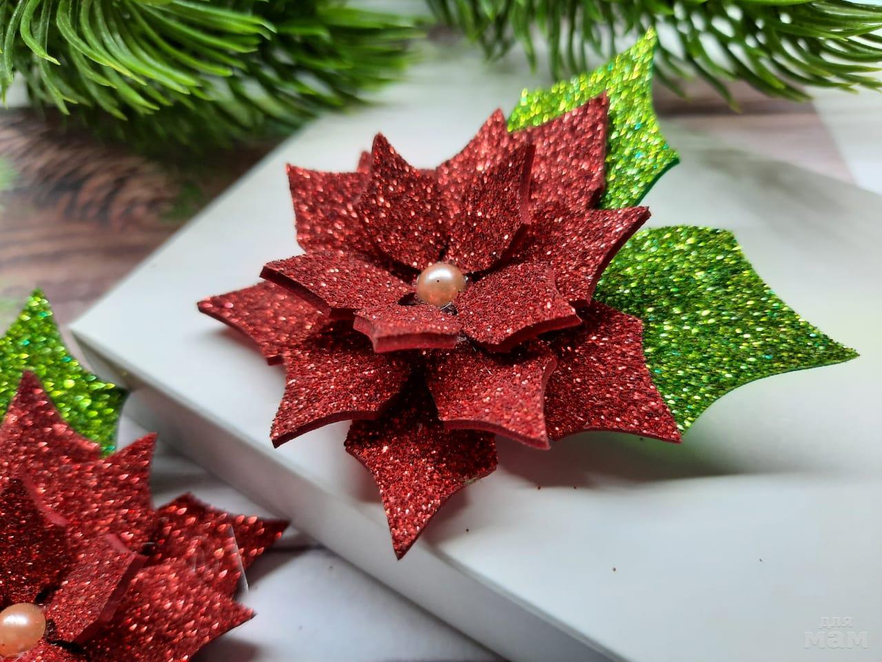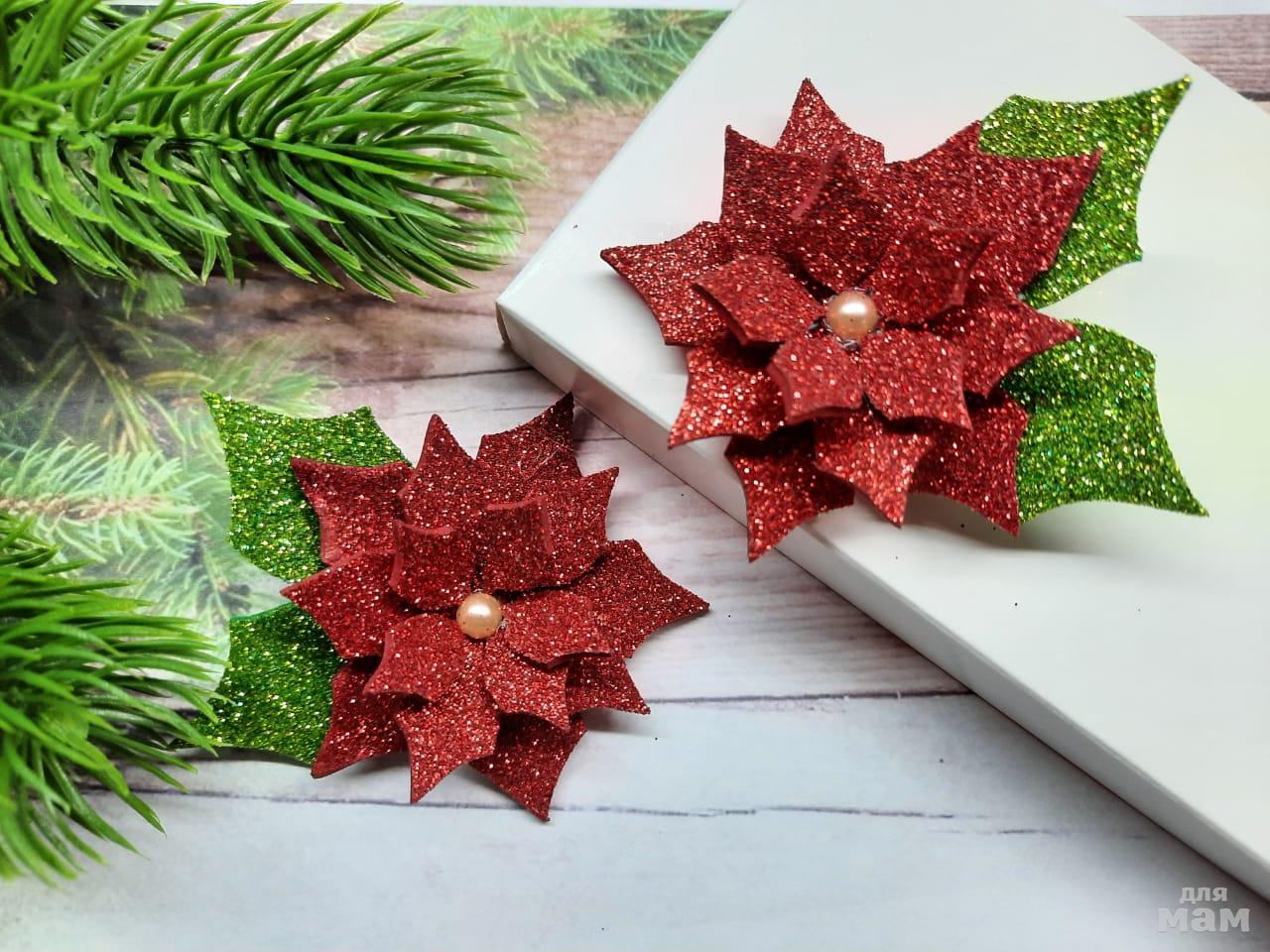 4) Капризные для фото, но очень классные заколочки пуансетия. Можно взрослым смело! Выглядят достойно и празднично.