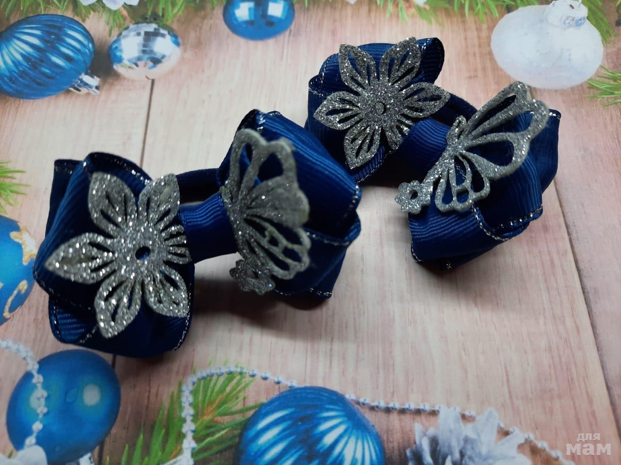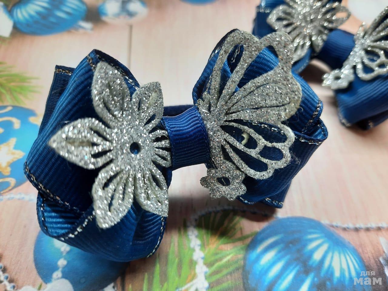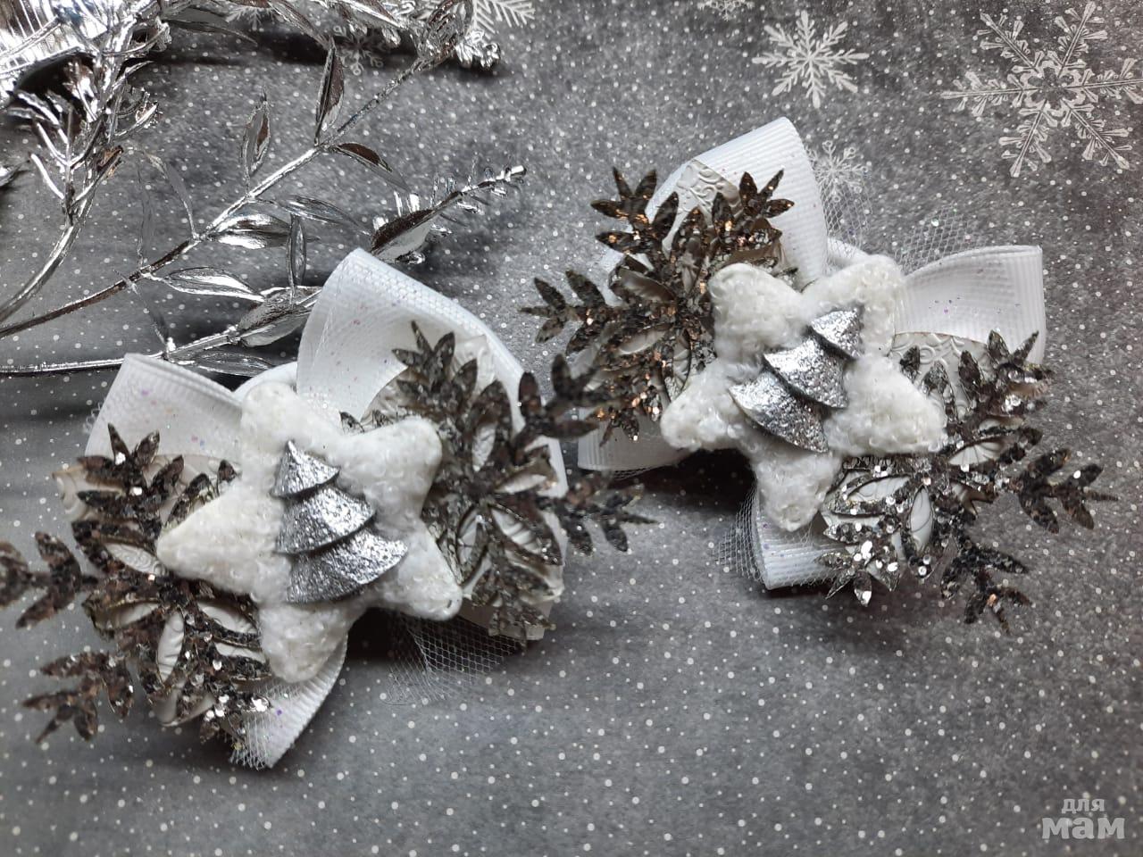 3) Маленькие бантики на косички. Размер 6 см. Когда хочется в повседневные школьные дни уже начинать притягивать новогоднее настроение)
