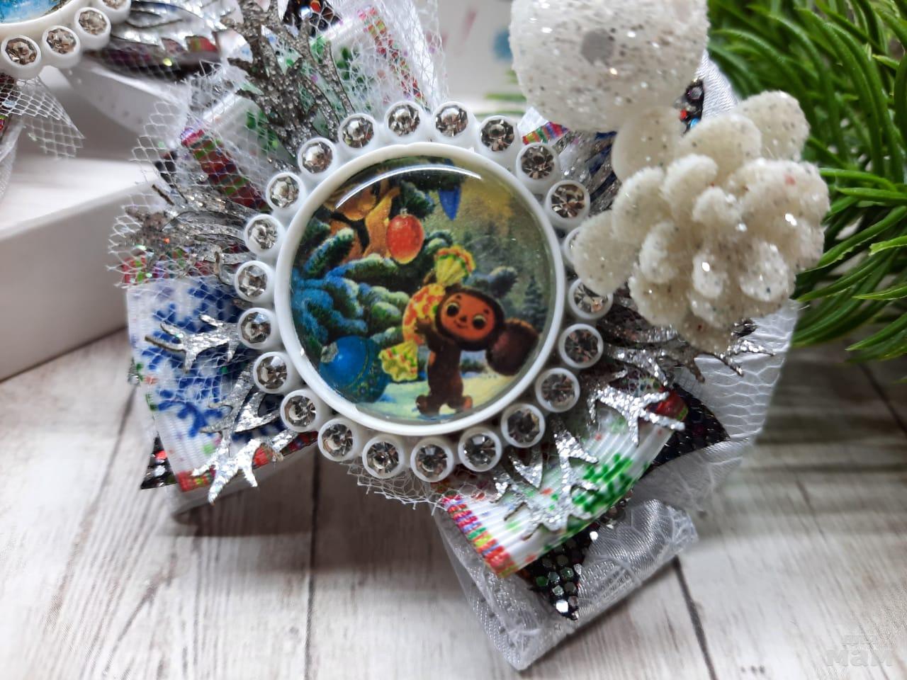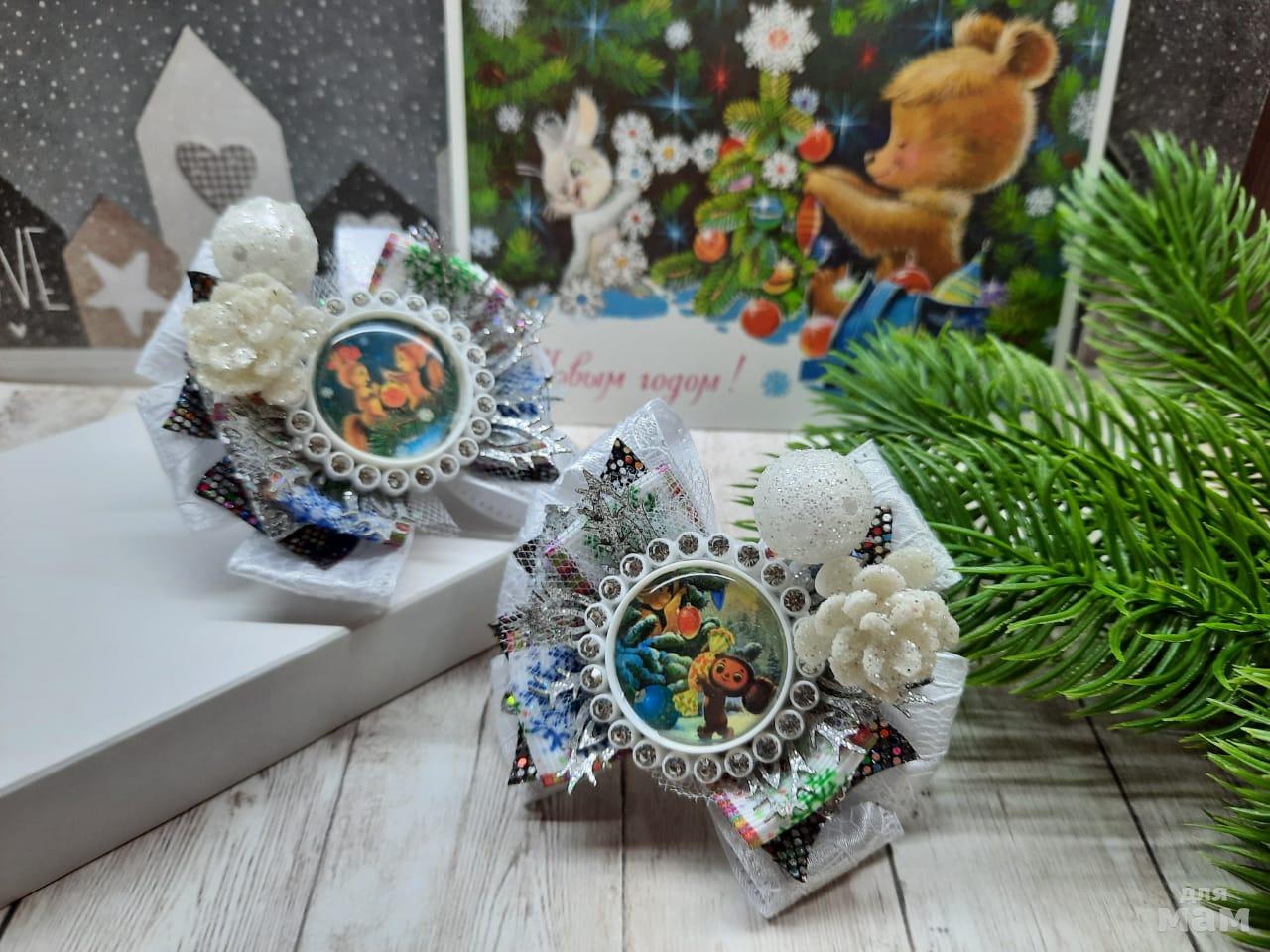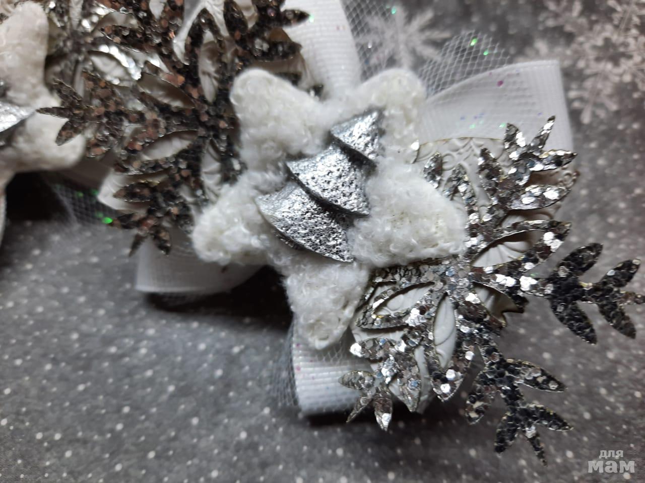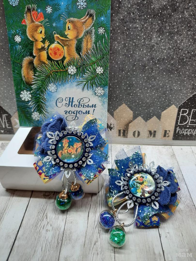 3) Маленькие бантики на косички. Размер 6 см. Когда хочется в повседневные школьные дни уже начинать притягивать новогоднее настроение)