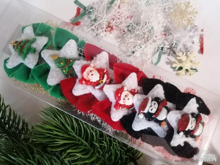 5) Готовый подарок маленькой моднице - набор новогодних бархатных бантиков в подарочной упаковке. Открыточка и новогодний пакет в комплекте))