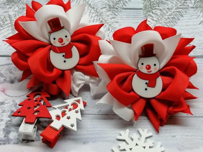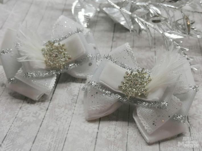 4) Шикарные зимние бантики!!! Использованы ленты категории люкс. Размер бантиков 7 см.