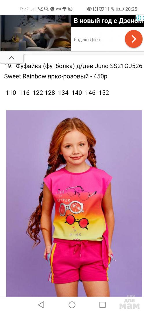 3. #19. Фуфайка (футболка) д/дев Juno SS21GJ526 Sweet Rainbow ярко-розовый - 450р размер 146