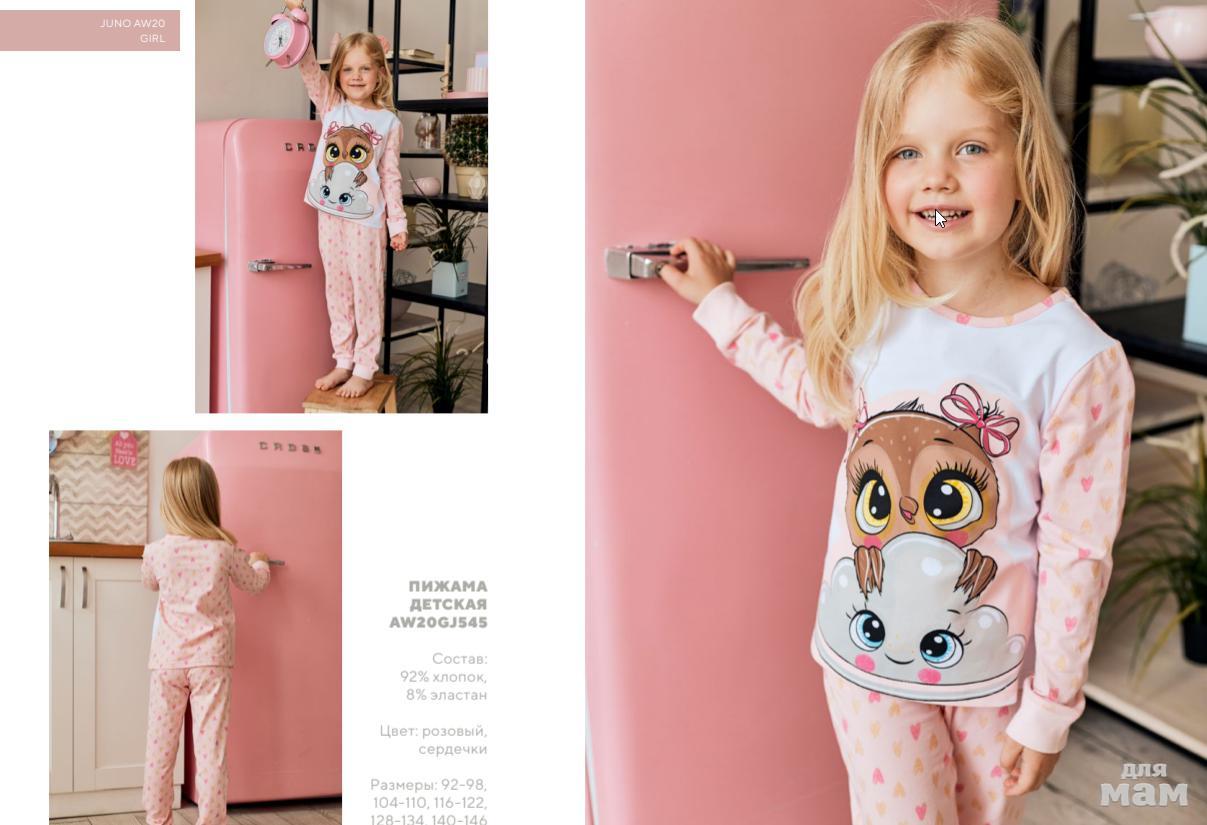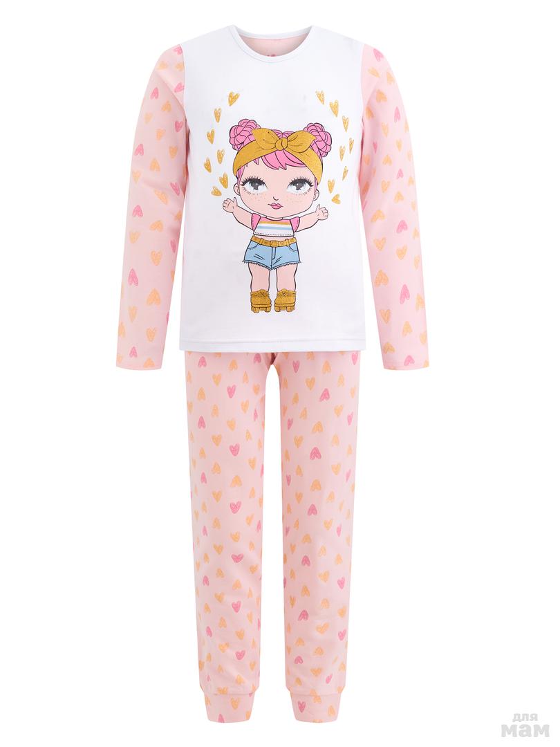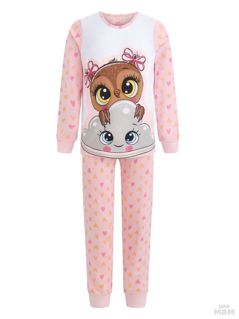 131. Пижама фуфайка (лонгслив), брюки д/дев Juno AW20GJ544 Sleepwear розовый сердечки цена 581р НОВАЯ ЦЕНА 498р