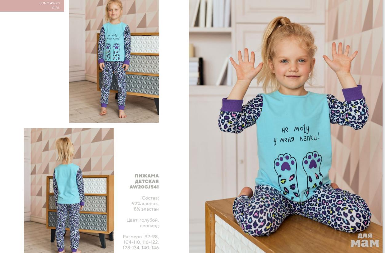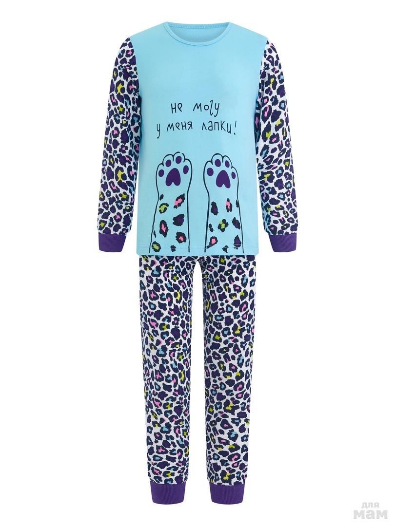 129. Пижама фуфайка (лонгслив), брюки д/дев Juno AW20GJ541 Sleepwear голубой леопард цена 581р НОВАЯ ЦЕНА 498р