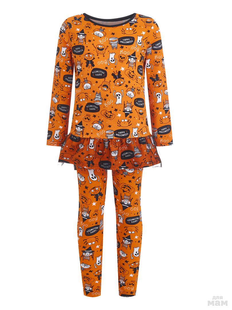 134. Пижама фуфайка (лонгслив), лосины д/дев Juno AW20GJ548 Halloween оранжевый цена 560р НОВАЯ ЦЕНА 480р