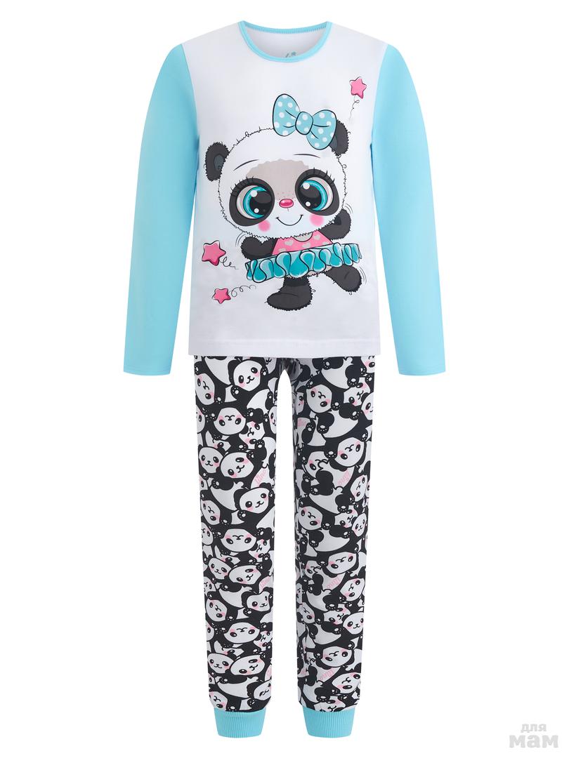 128. Пижама фуфайка (лонгслив), брюки д/дев Juno AW20GJ540 Sleepwear голубой панды цена 560р НОВАЯ ЦЕНА 480р