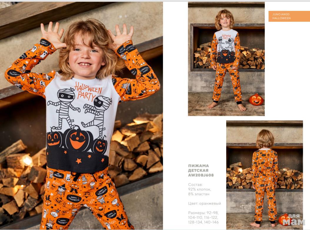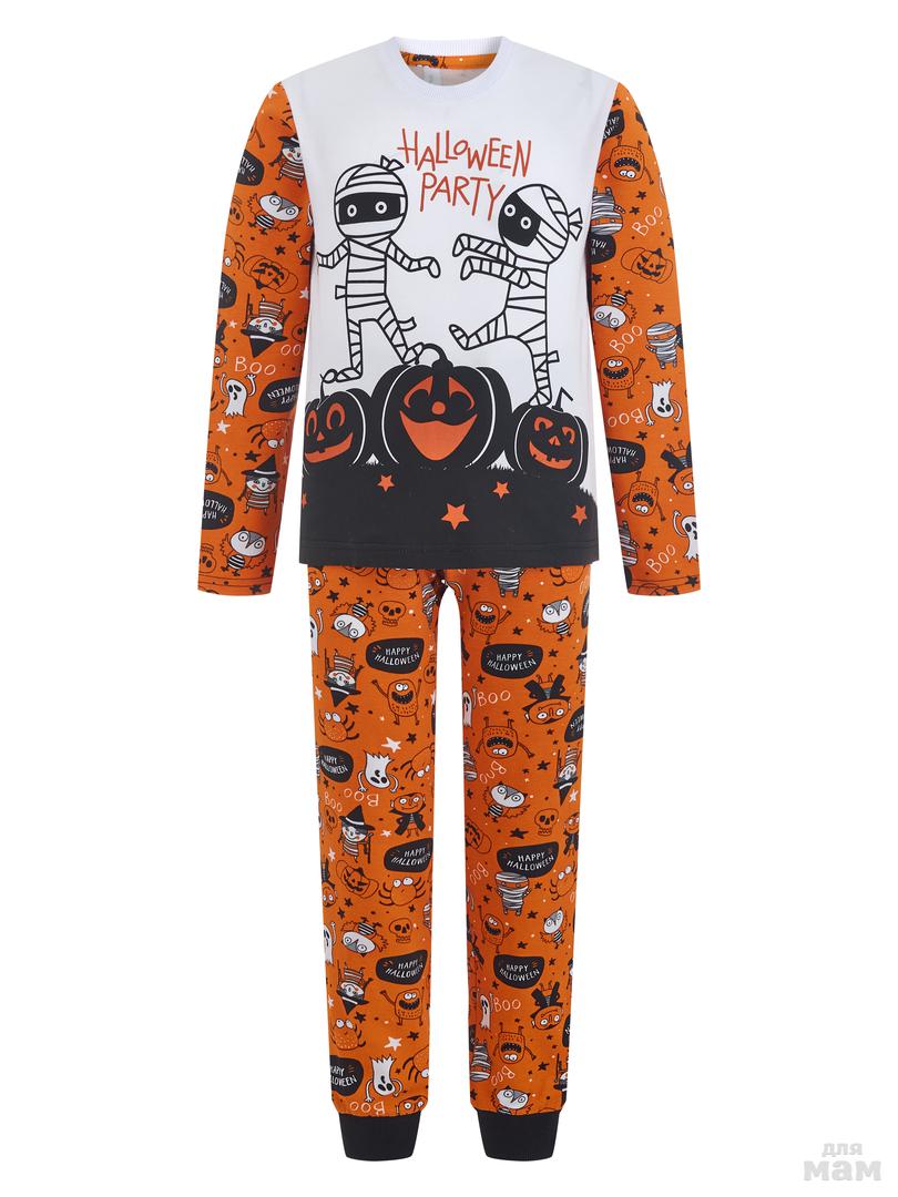 125. Пижама фуфайка (лонгслив), брюки д/мал Juno AW20BJ608 Halloween оранжевый цена 581р НОВАЯ ЦЕНА 498р
