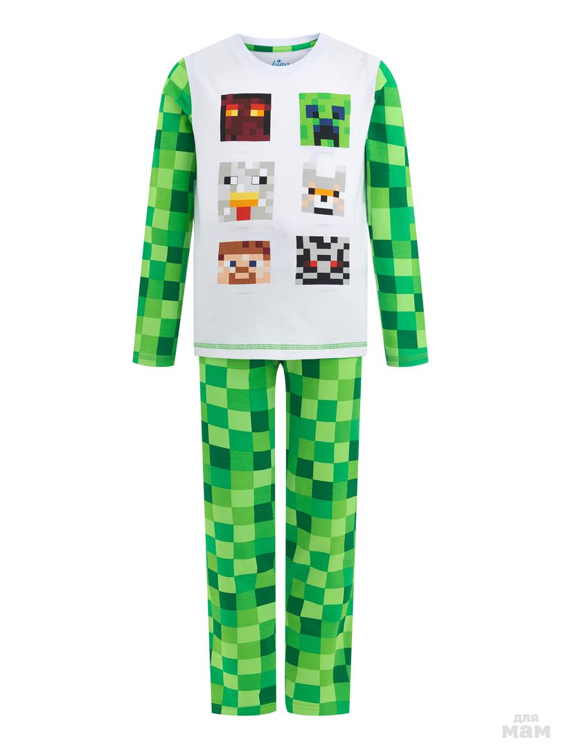 123. Пижама фуфайка (лонгслив), брюки д/мал Juno AW20BJ605 Sleepwear белый/зеленый цена 609р НОВАЯ ЦЕНА 522р