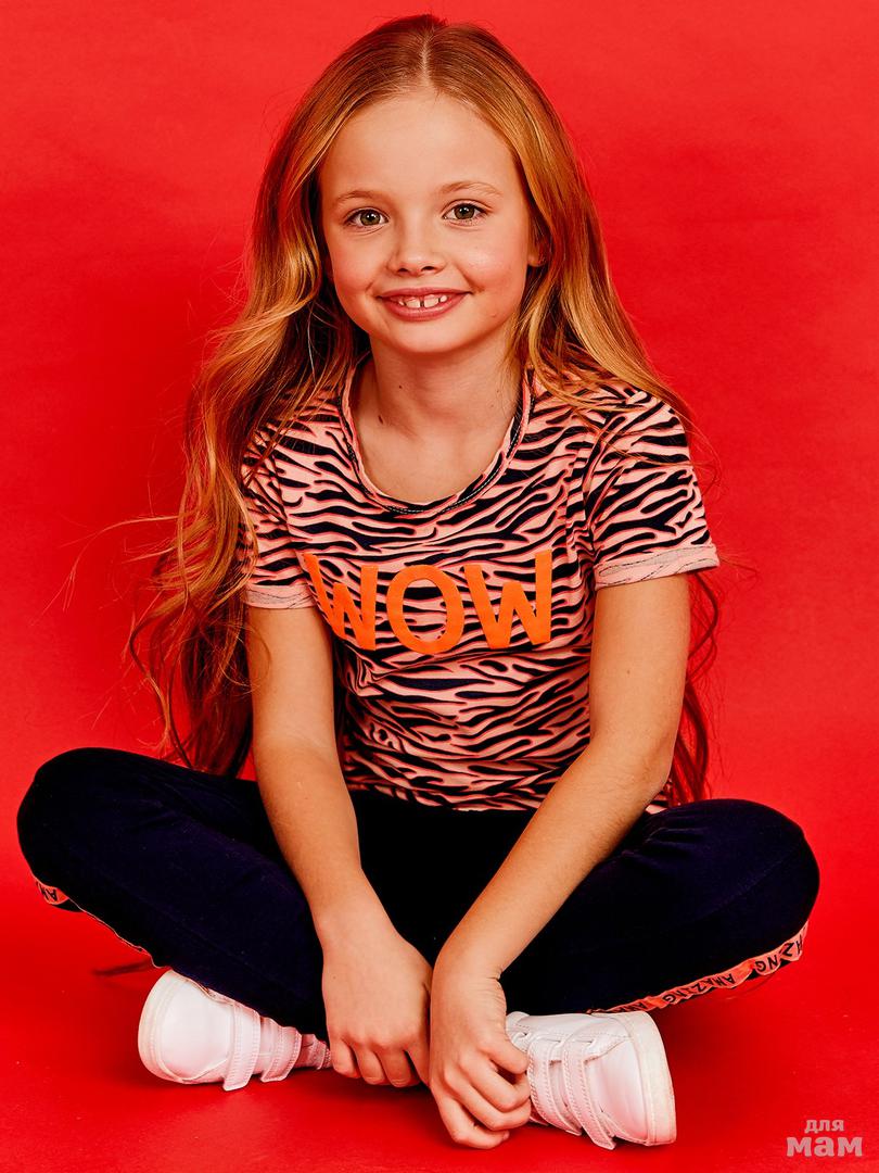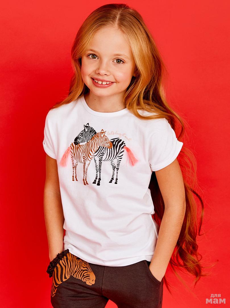 32. Фуфайка (футболка) д/дев Juno E38370-35COZ Amazing love коралл/зебра р.140 цена 469р -НЕТ