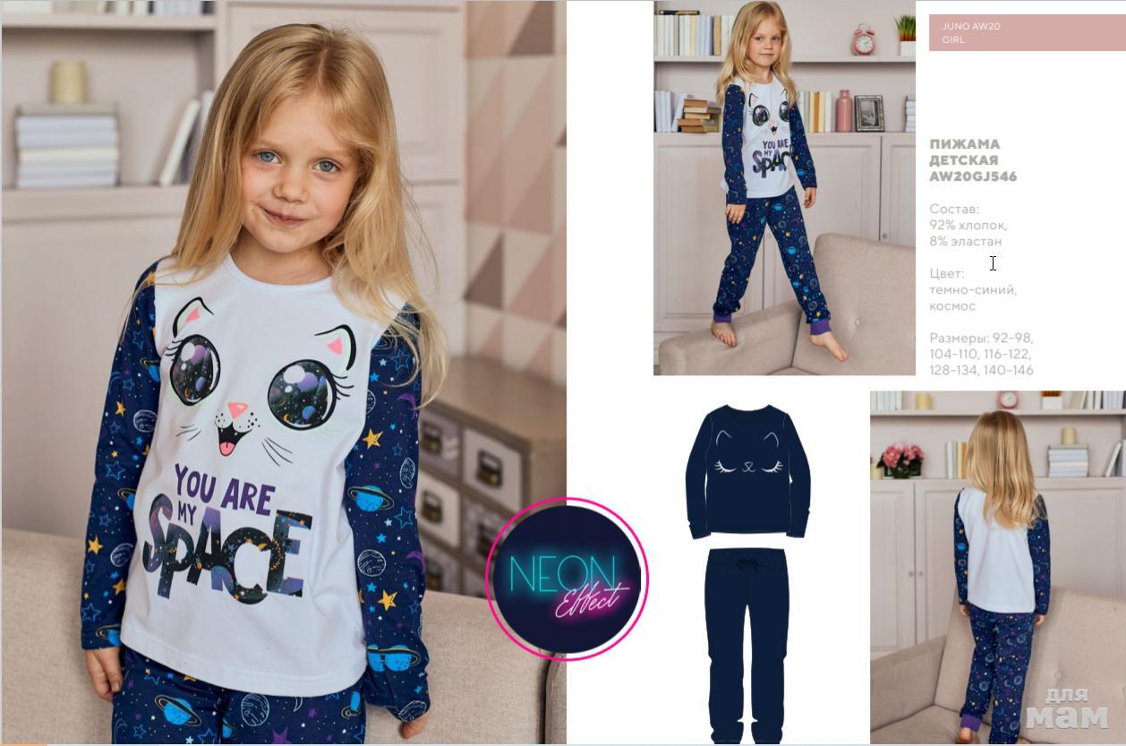 135. Пижама фуфайка (лонгслив), брюки д/дев Juno AW20GJ546 Sleepwear темно-синий космос цена 610р НОВАЯ ЦЕНА 522р