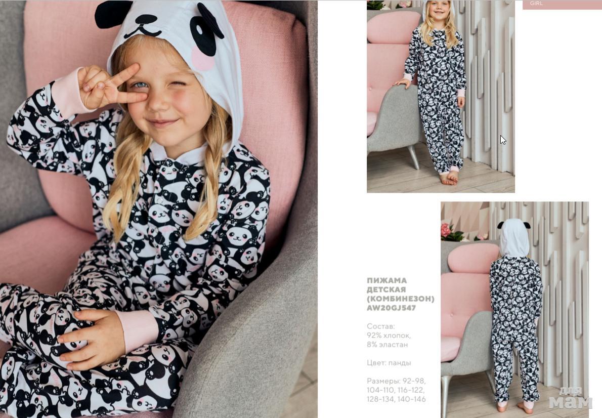 133.Пижама модель "комбинезон пижамный" д/дев Juno AW20GJ547 Sleepwear панды цена 840р НОВАЯ ЦЕНА 720р