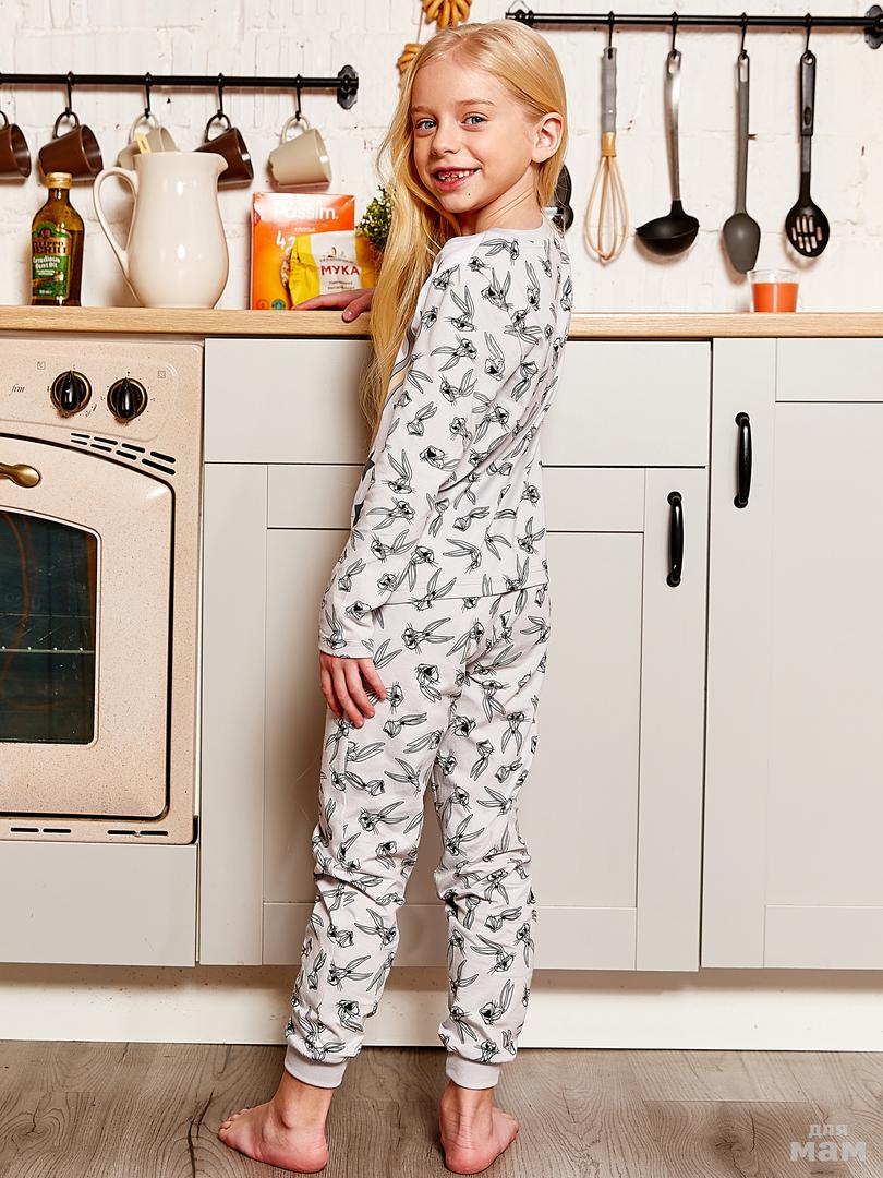 105 . Пижама д/дев (фуфайка дл/рук, брюки) Juno "Looney Tunes" AW20GJ0515 серый/зайчики цена 665р