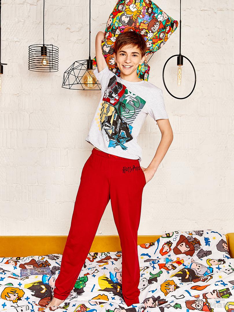 119. Комплект фуфайка (футболка), брюки муж Crazy Getup by Juno "Гарри Поттер" AW20BJ0612 серый меланж/бордовый цена 1120р