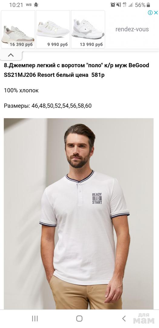 8.Джемпер легкий с воротом "поло" к/р муж BeGood SS21MJ206 Resort белый цена 581р, размер 48