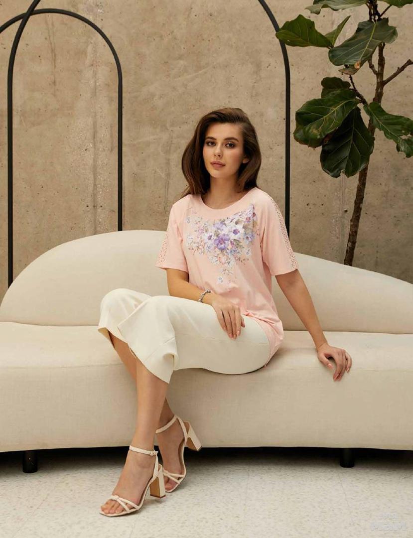 Комплект фуфайка (футболка) д/рук, брюки жен Mia Cara AW20WJ351 Pink Puff розовый/рисунок р.46-48