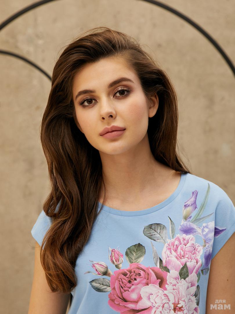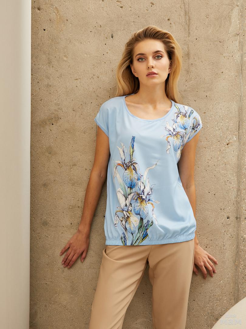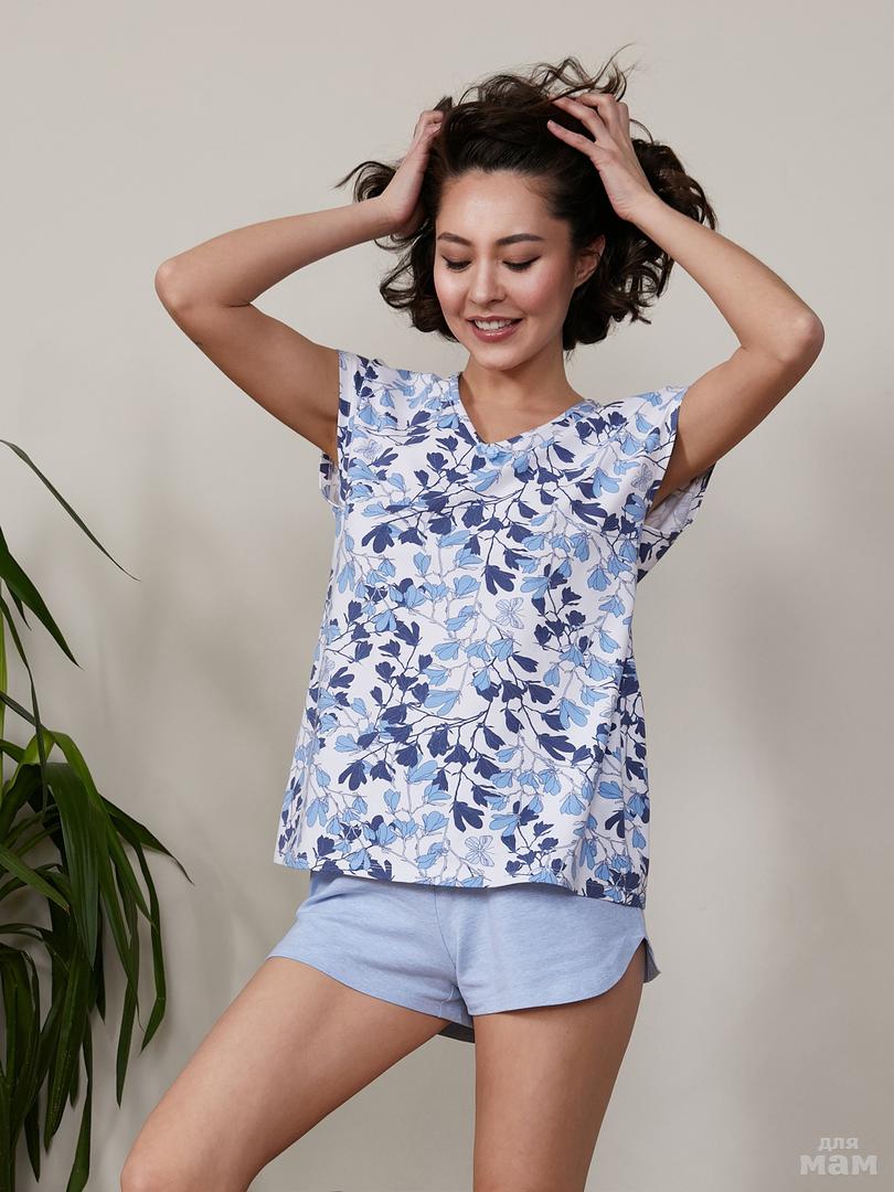 234.Пижама фуфайка (футболка), шорты жен Mia Cara SS21MJ354 Sky Flowers голубой/цветы цена 840р