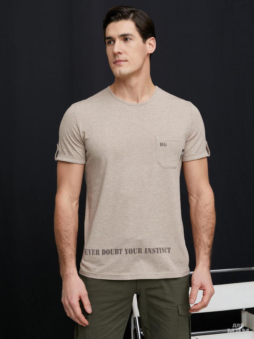 46.Фуфайка (футболка) муж BeGood SS21MJ225 Safari бежевый меланж цена 644р