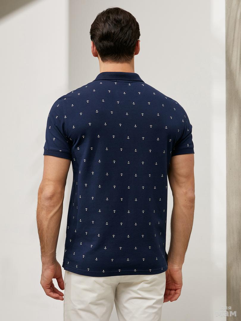 24.Джемпер легкий с воротом "поло" к/р муж BeGood SS21MJ208 Resort темно-синий цена 679руб