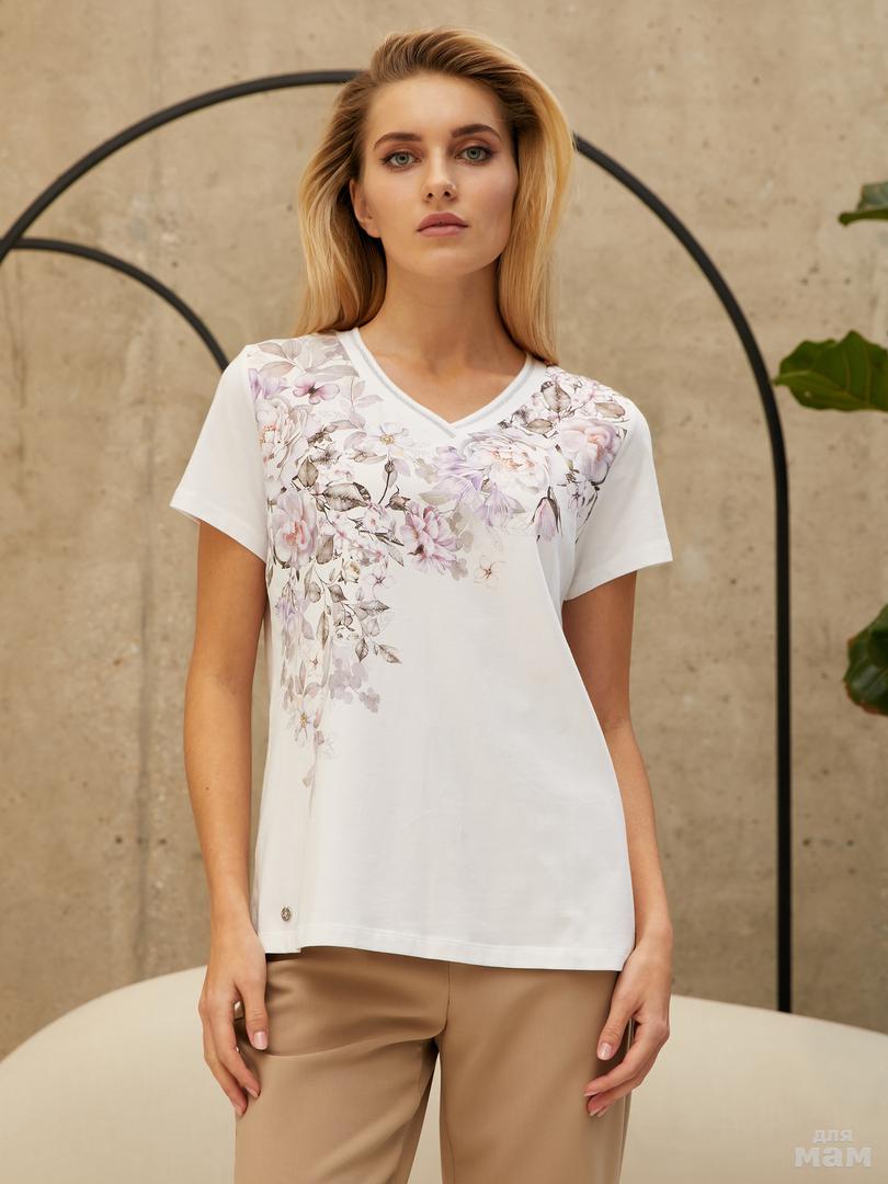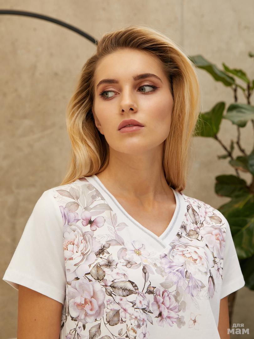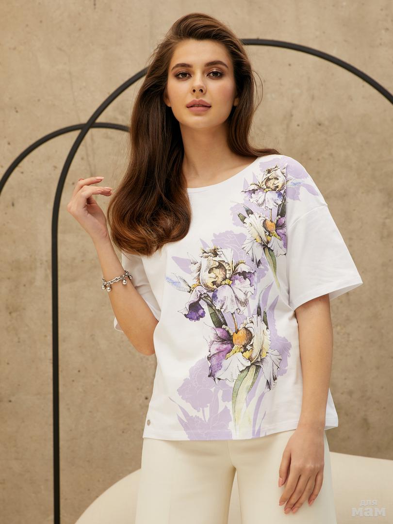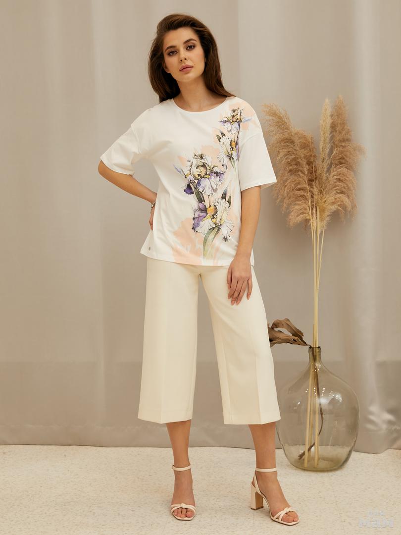 236.Комплект фуфайка (футболка), брюки жен Mia Cara SS21MJ356 Sky Flowers белый/цветы цена 1225р