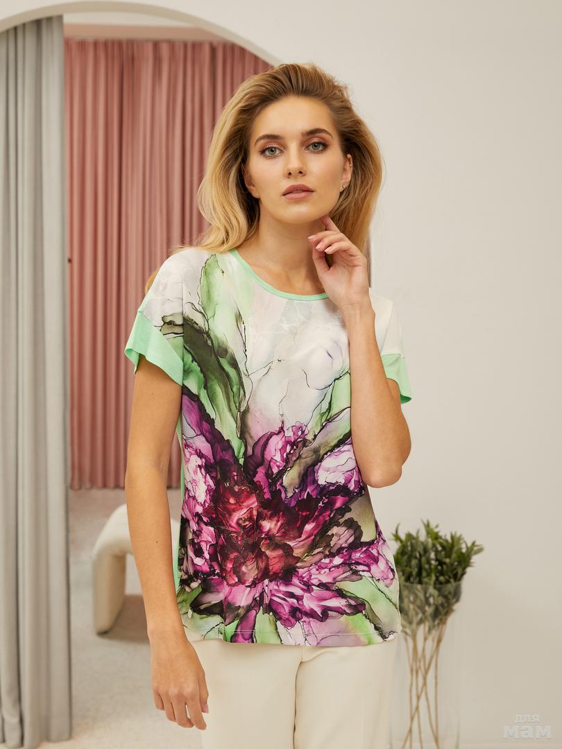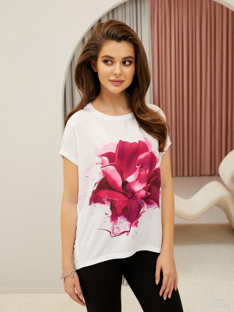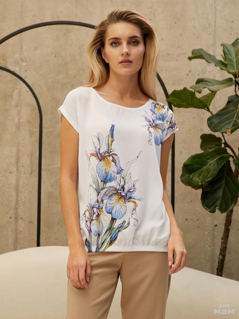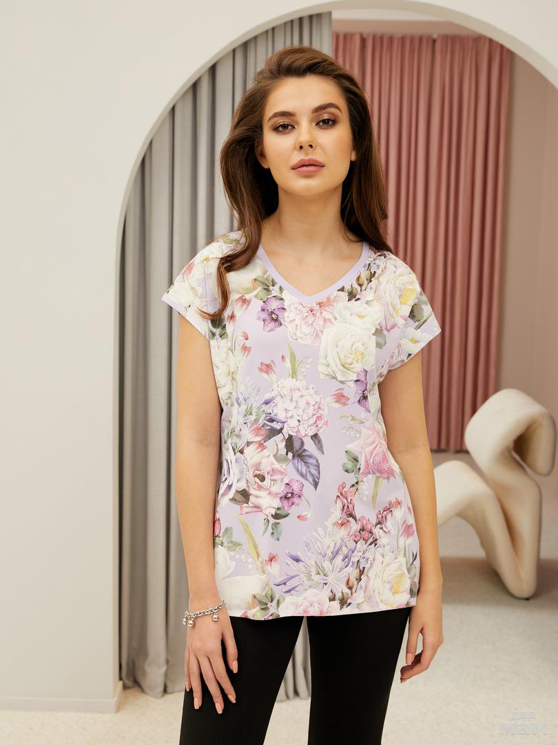 236.Комплект фуфайка (футболка), брюки жен Mia Cara SS21MJ356 Sky Flowers белый/цветы цена 1225р