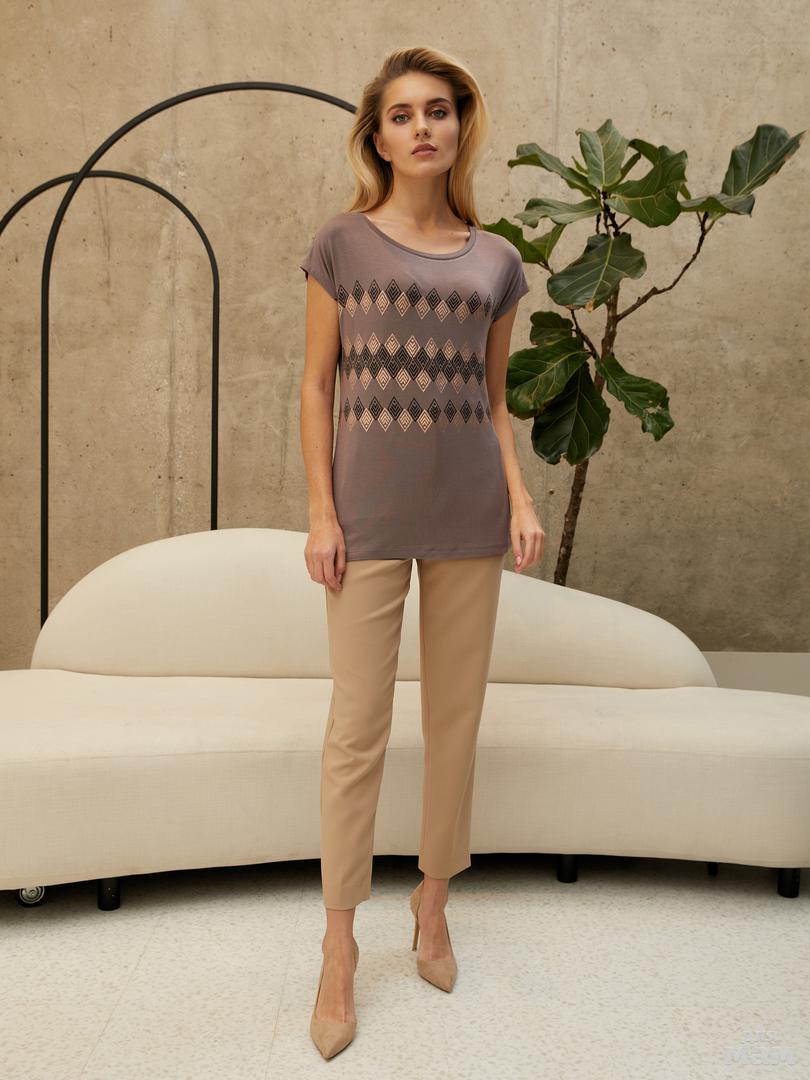 246.Комплект жен: фуфайка(футболка), брюки Mia Cara SS21WJ1018 Alfia кофейный/орнамент цена 1330р