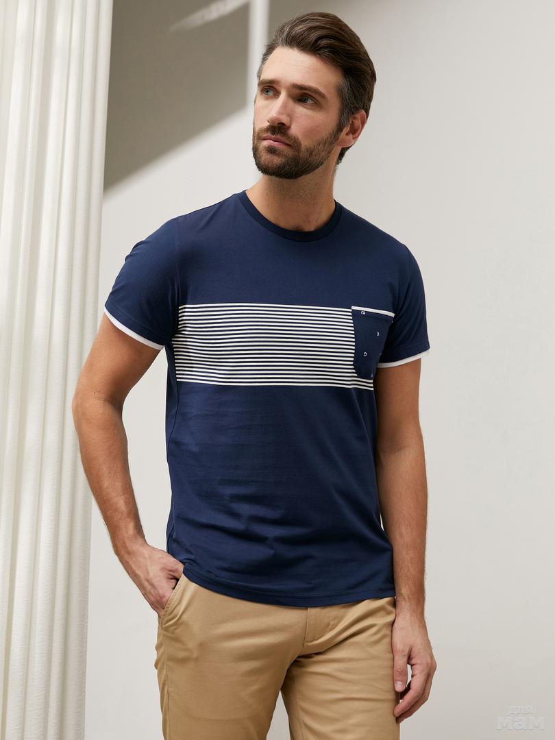 28.Фуфайка (футболка) муж BeGood SS21MJ212A Resort темно-синий цена 490р