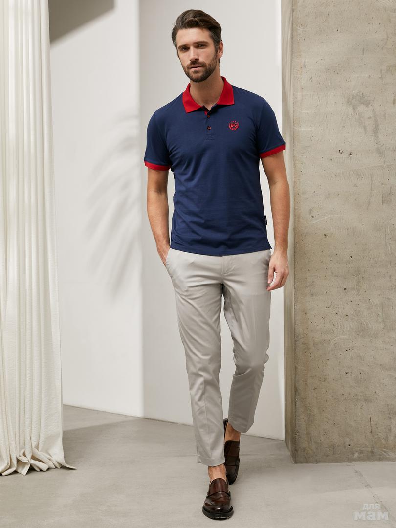 2.Джемпер легкий с воротом "поло" к/р муж BeGood SS21MJ201A Resort синий цена 637р, размер 46