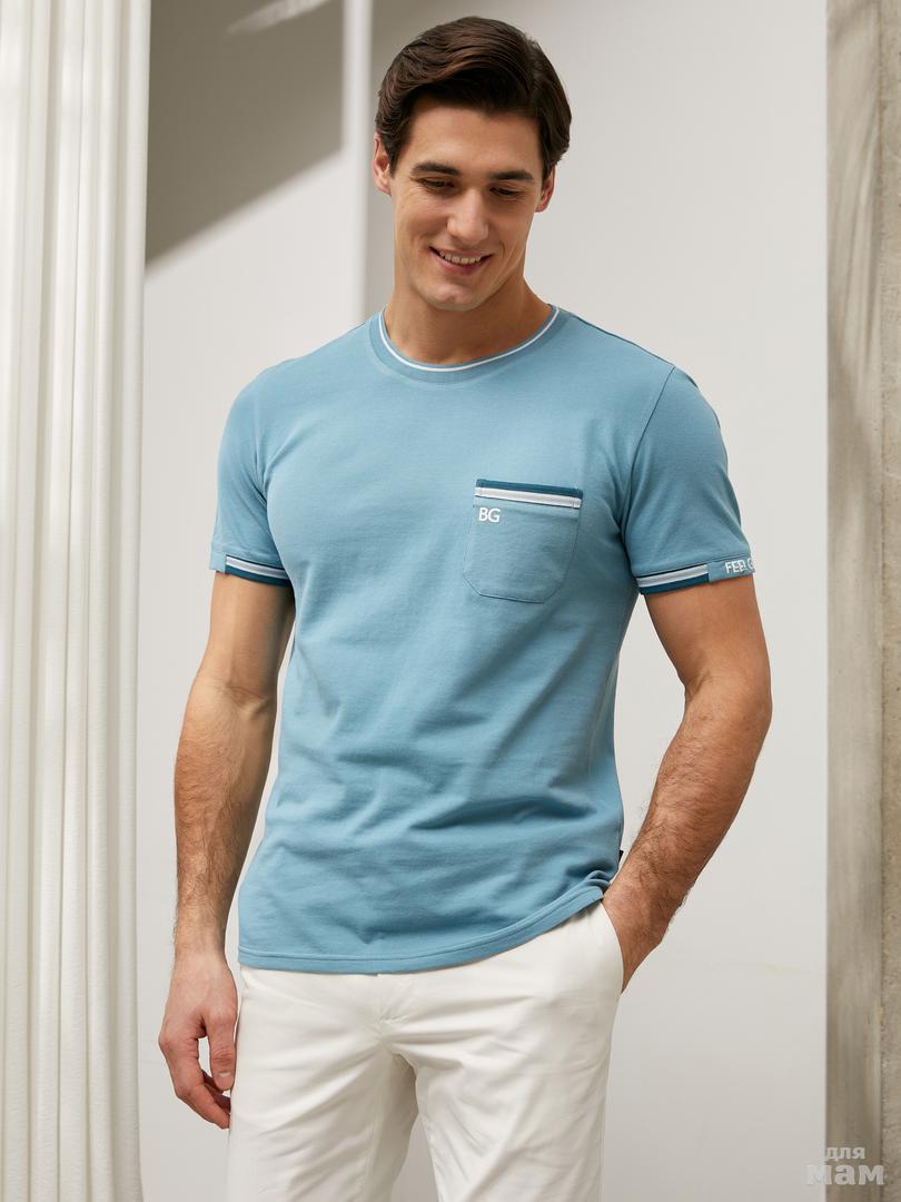 33.Фуфайка (футболка) муж BeGood SS21MJ214A Resort голубой деним цена 518р