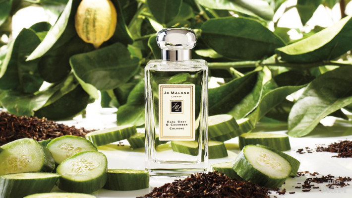 Британский бренд Jo Malone представил в 2011 году «чайную коллекцию» ароматов, частью которой стала фужерная женская композиция Earl Grey and Cucumber. Классическое угощение англичан – чай и бутерброды с огурцом нашли свое отражение в каплях парфюма, образованного нотами воды, жасмином, бергамотом и зеленым яблоком. В сердце звучат огурец и ангелика, а завершают пирамиду виргинский кедр, мускус, пчелиный воск и сладкая ваниль на десерт.