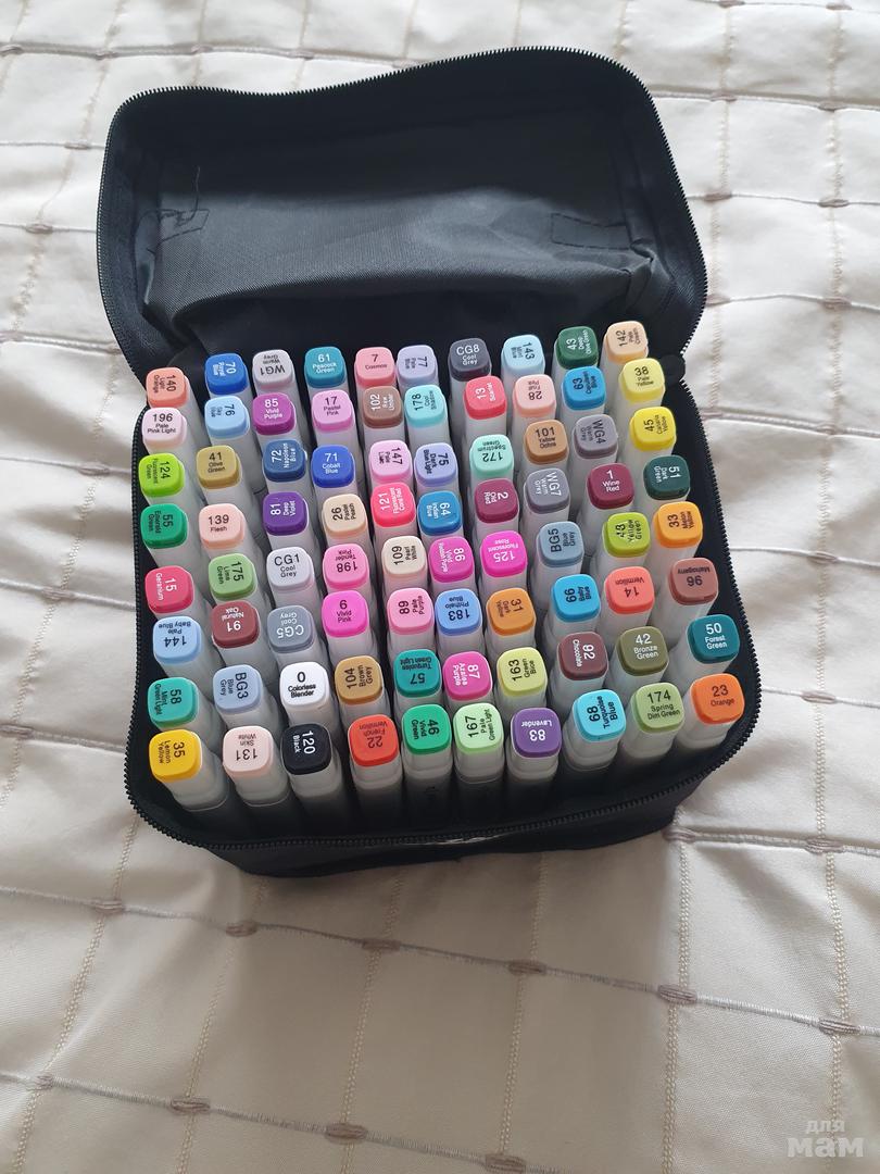 1. Набор 80 шт. Очень удобно ,что маркеры,помимо сумочки, находятся в жесткой подставке + в наборе есть маркер блендер белого цвета(для смешивания цветов) 2590 руб.