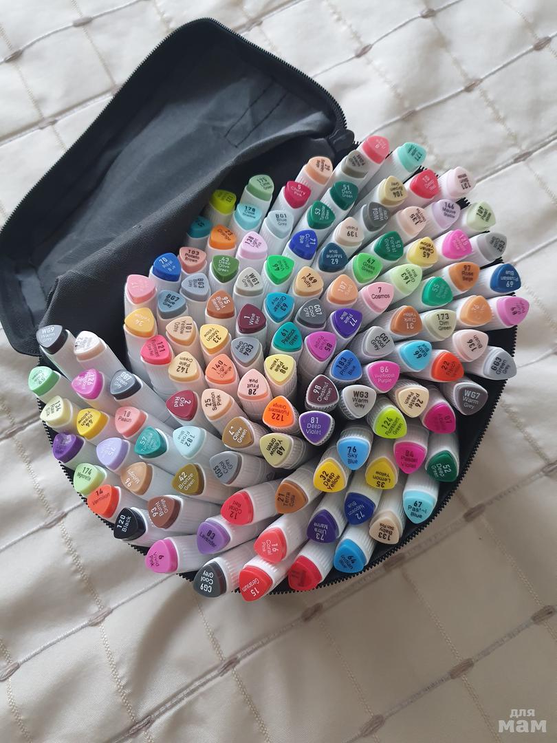 1. Набор 80 шт. Очень удобно ,что маркеры,помимо сумочки, находятся в жесткой подставке + в наборе есть маркер блендер белого цвета(для смешивания цветов) 2590 руб.