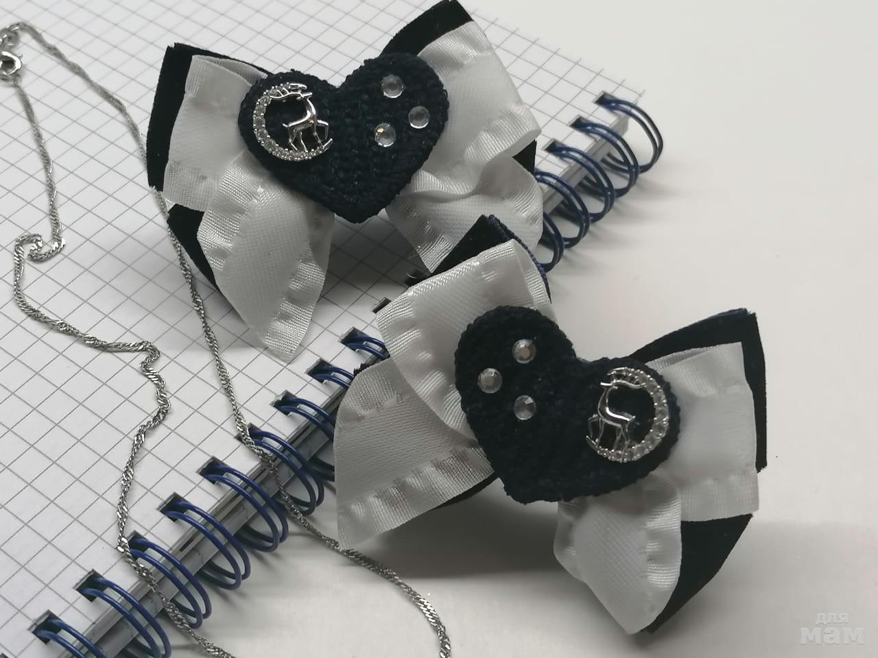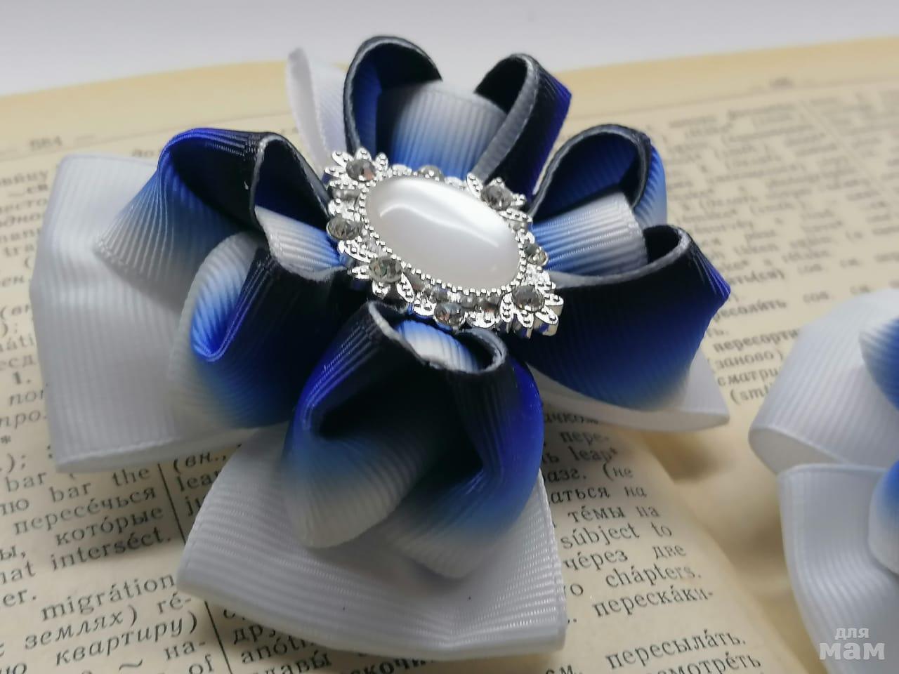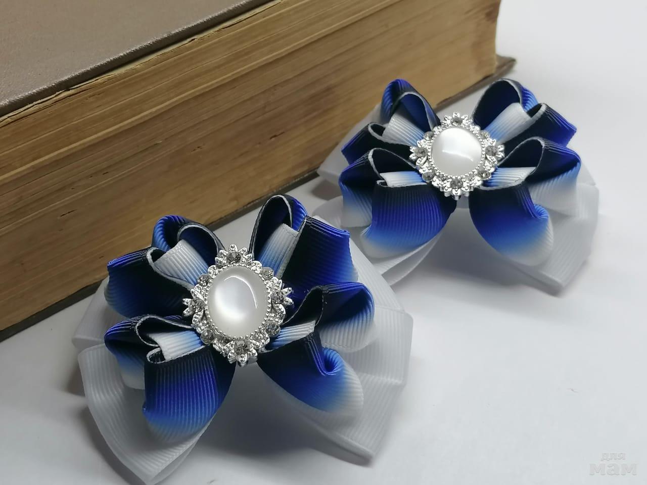 1) Красивые школьные бантики под темно-синюю форму. Размер бантика 9 см, резиночки основы - 4см. Без повтора.