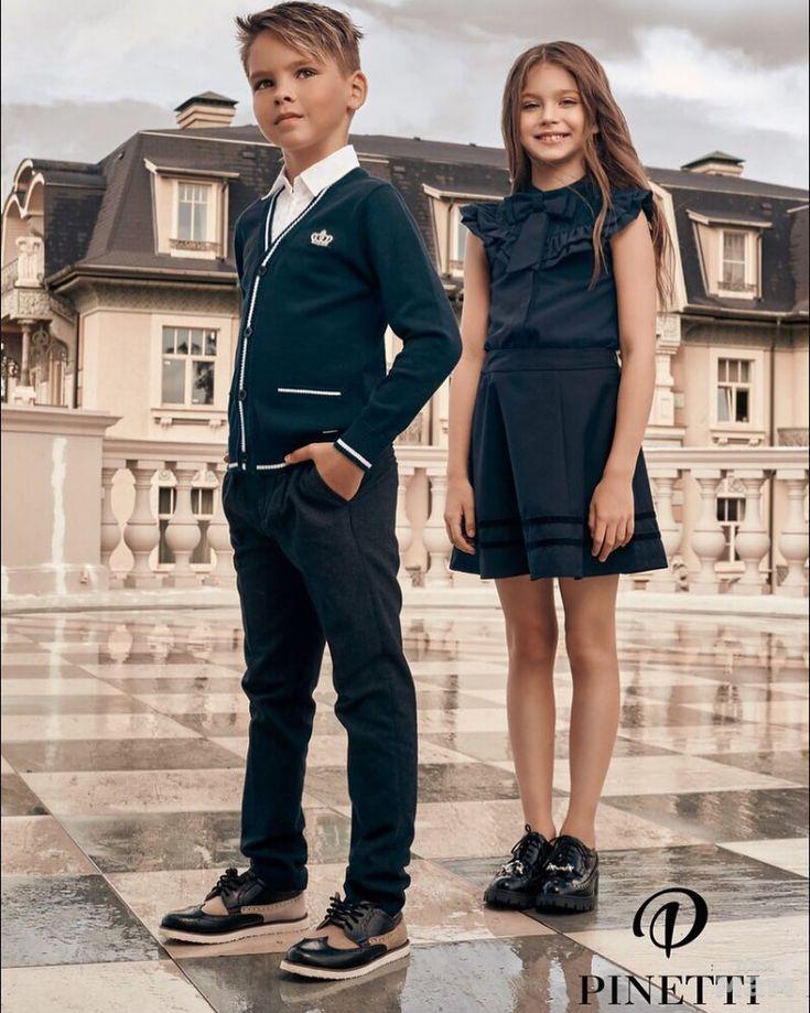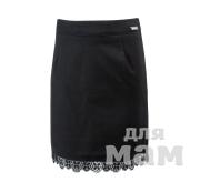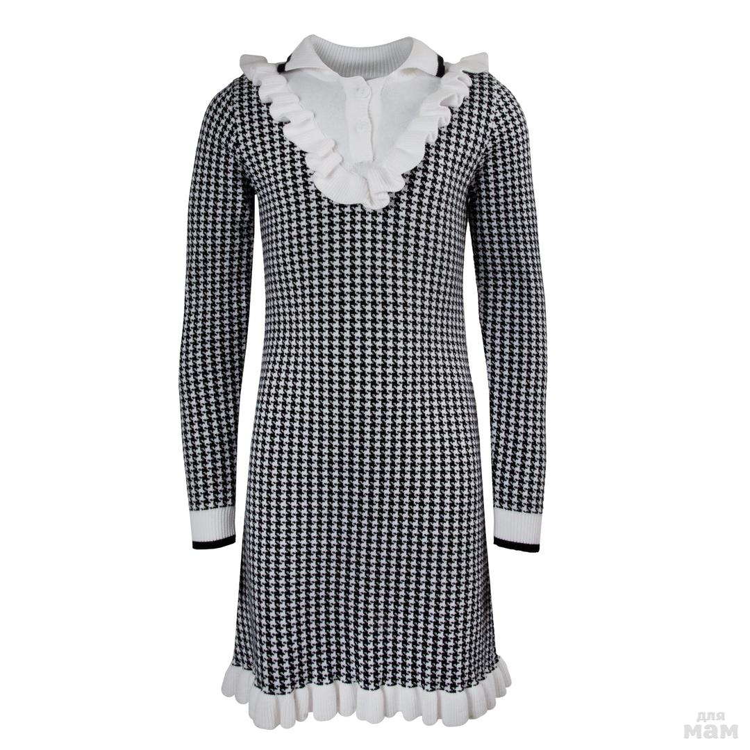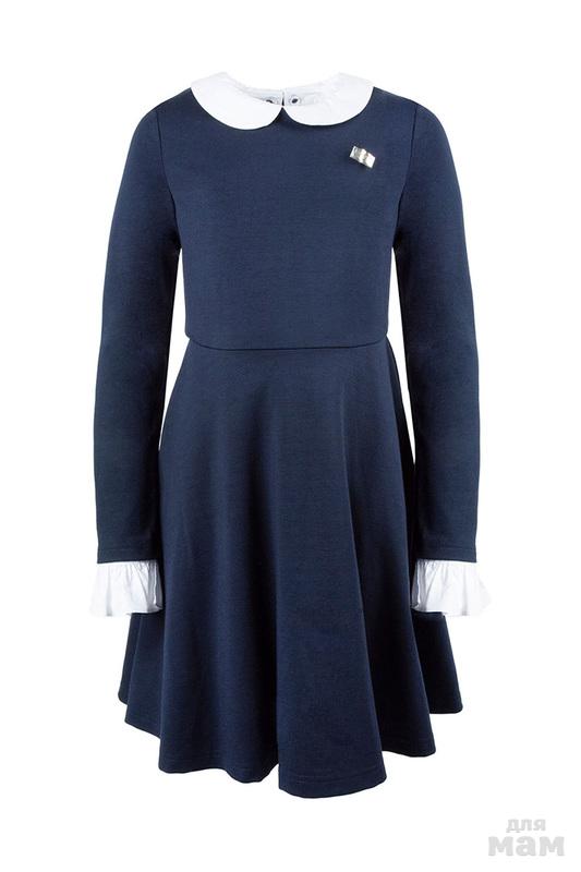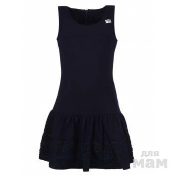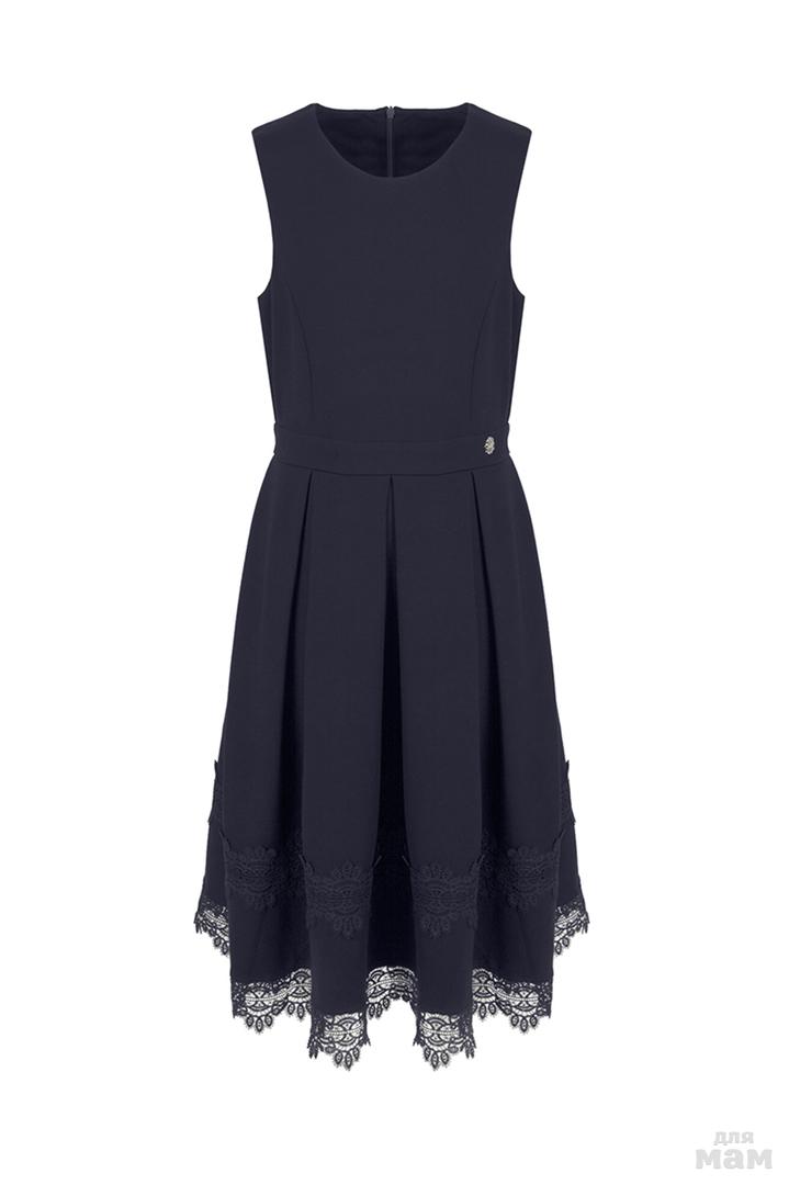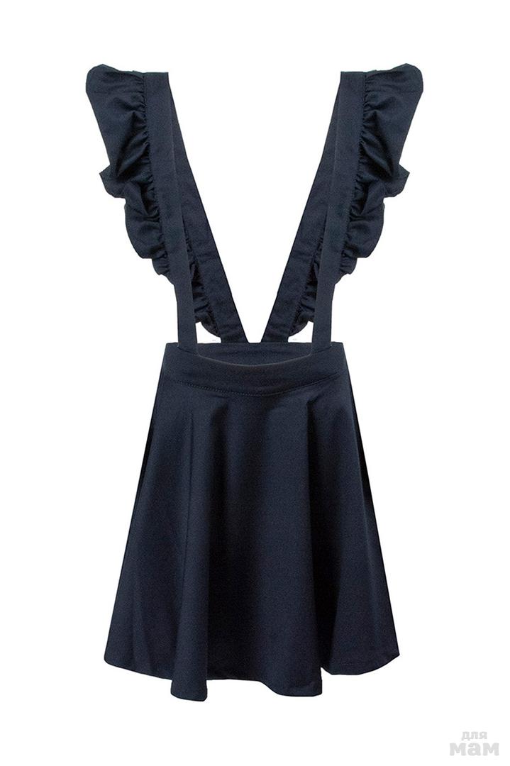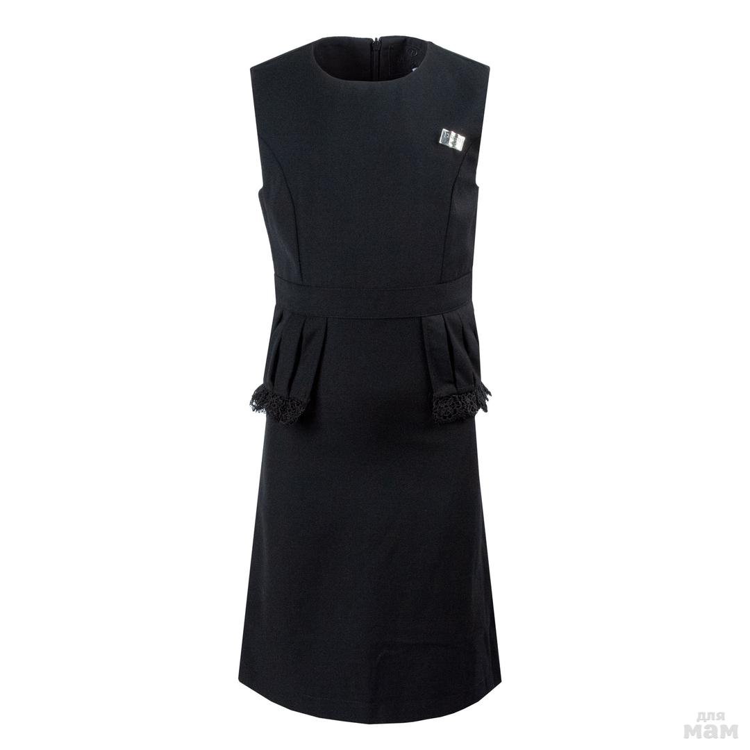 Блузка из трикотажа с коротким рукавом, с отложным воротничком, кокетка на полочке декорирована гипюром и рюшами. Небольшой бант-лента под воротником.